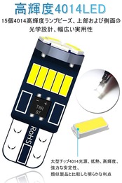 性能:このT10 LED は高発光効率のSMD4014 高輝度チップを採用し、従来品を遥かに凌ぐ800LMの明るさを実現します。純正バルブと比較して、最大で約4倍の明るさUPが可能になりました。
