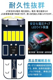安全性 :T10 LED はハイエンド分流抵抗を採用しており、ソケット部分は銅を使い、使用時にストロボを起こすことを避けられます。