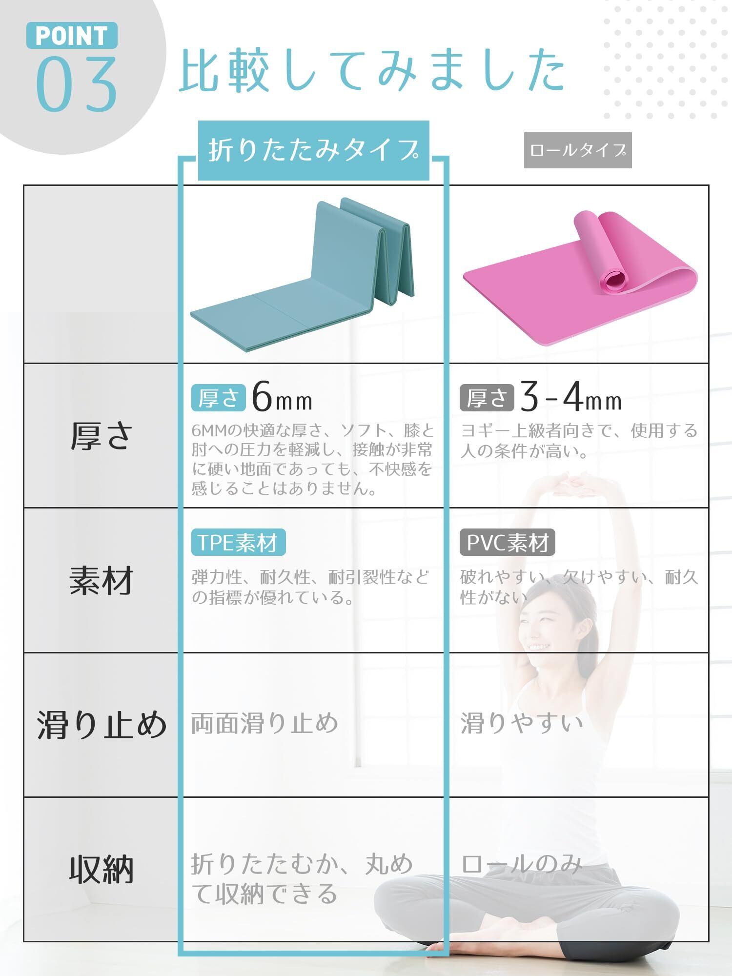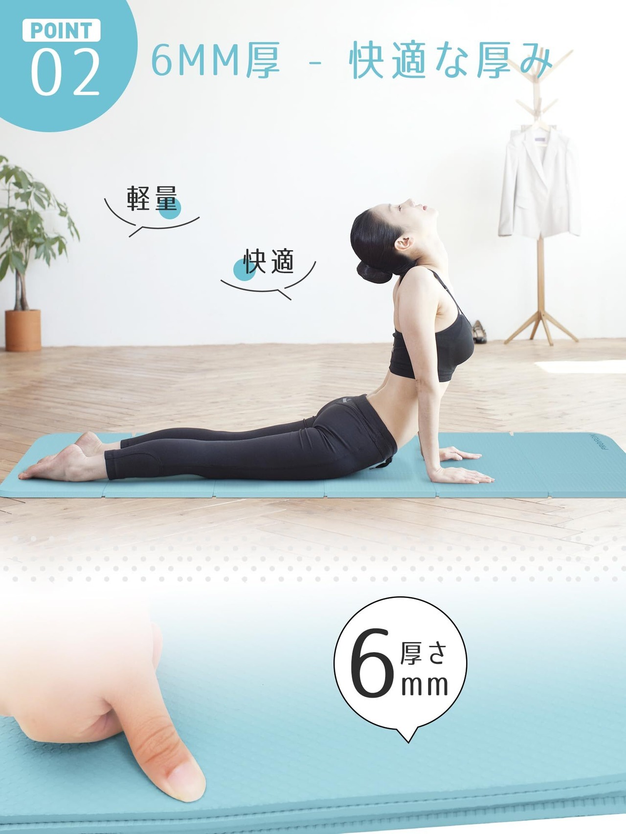 【折りたたみヨガマット tpe 6mm】6mm、より快適で滑りにくい。