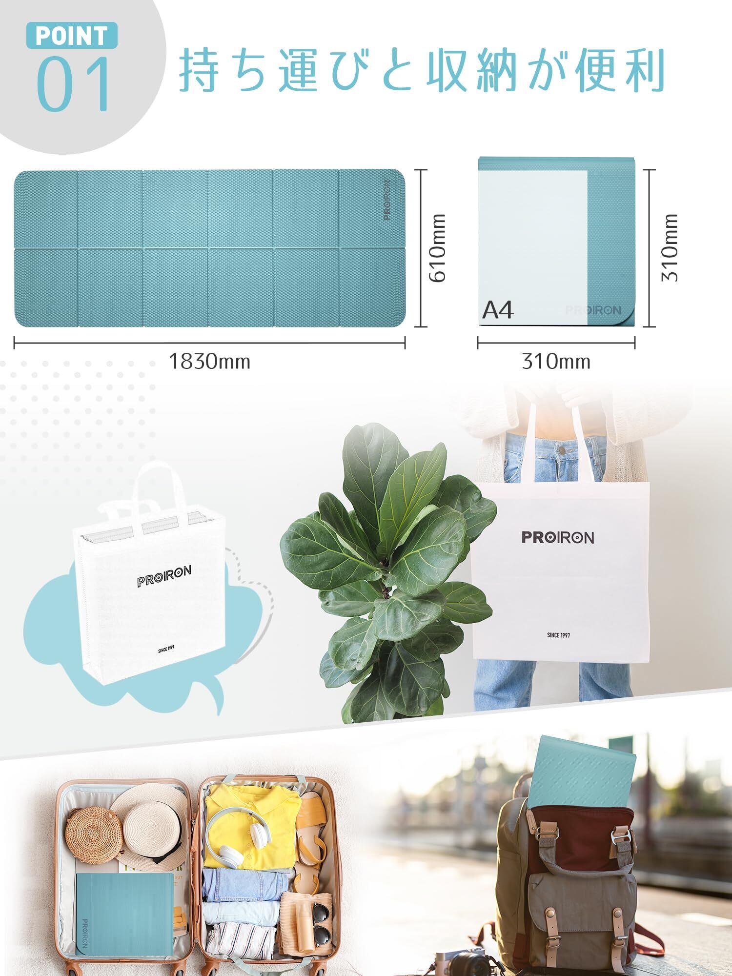 PROIRON ヨガマット 折りたたみ ストレッチマット 6mm コンパクト トラベル トレーニングマット 厚め 軽量 持ち運び TPE材料 183×61×0.6cm
