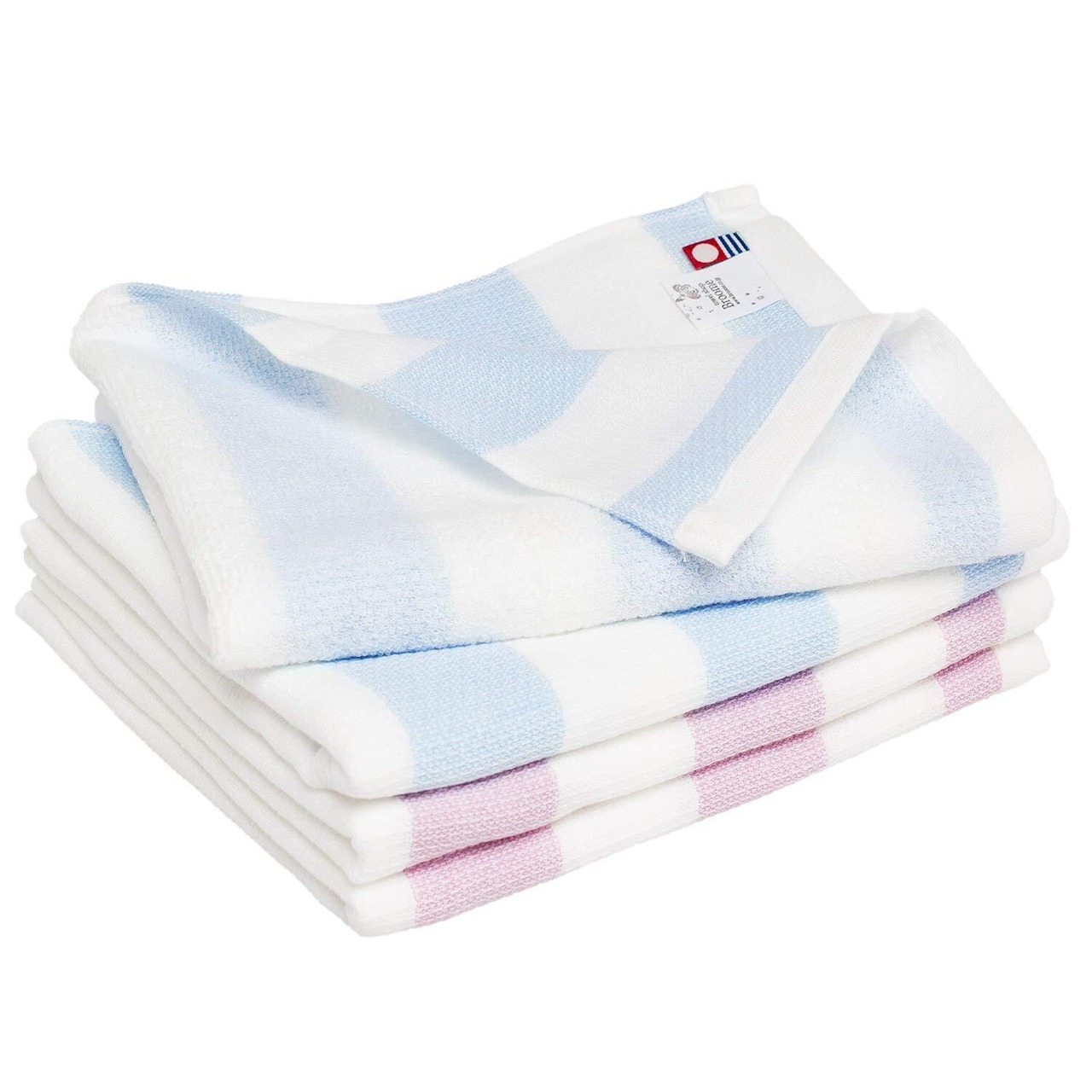 ブルーム 今治タオル 認定 ガーゼタオル フェイスタオル 4枚セット グルービー ボーダー キッチンタオル 速乾 部屋干し 日本製 綿100% (ブルー・ピンク)