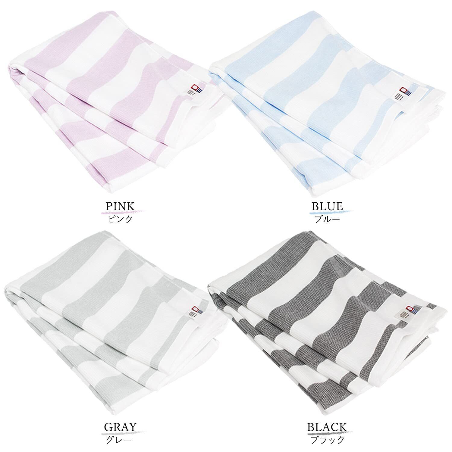 【商品詳細】サイズ:約35×84cm、約60g、綿100%、日本製(今治)。カラーは全4色(グレー・ブラック・ブルー・ピンク)。モク調デザインで、さわやかな色合いと、シックな色合いのものをご用意しております。