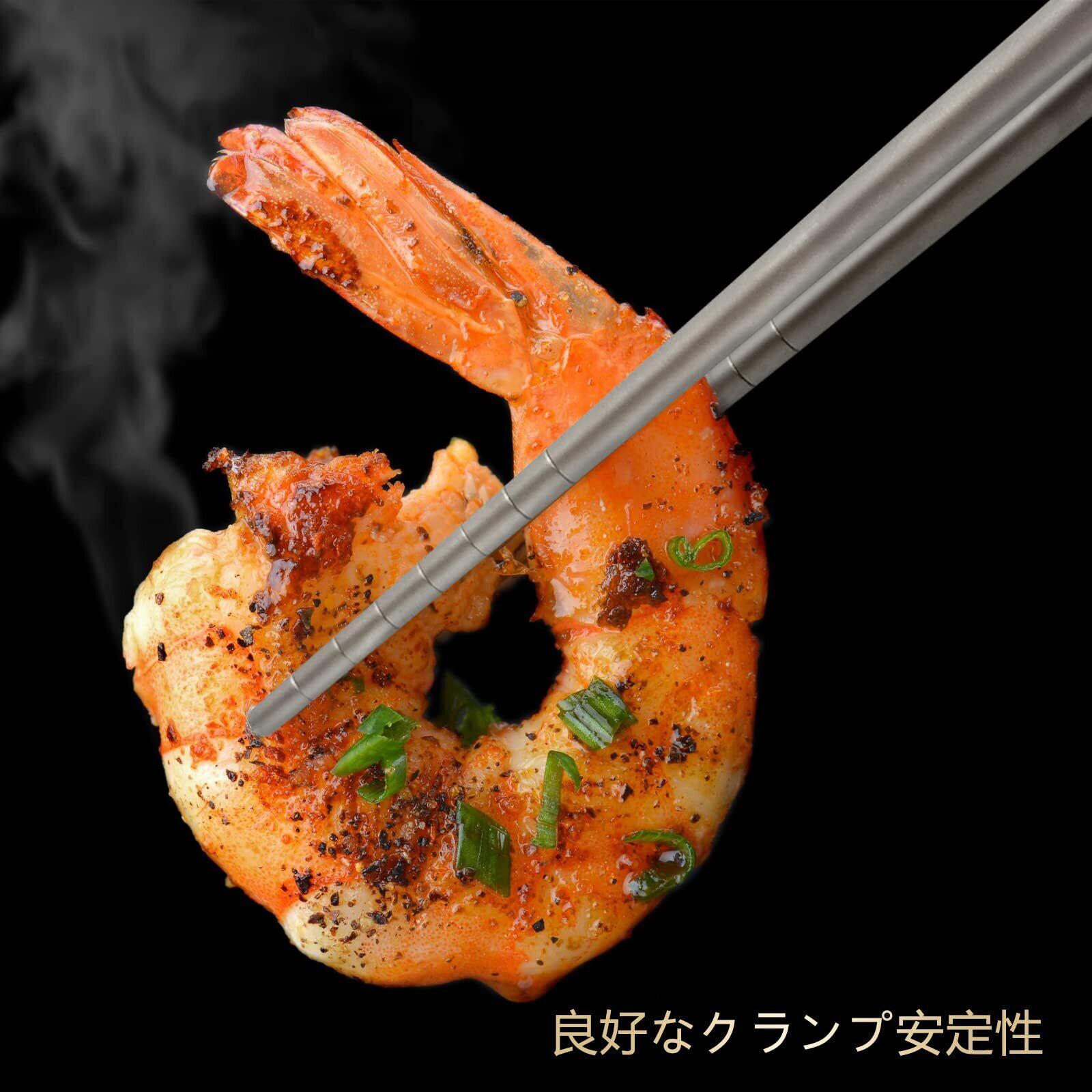 【滑り止め】チタン箸の先端に滑り止め構造により小さいや丸状食べ物或いは細長い麺等を取っても落ちにくい、使い勝手がいい。