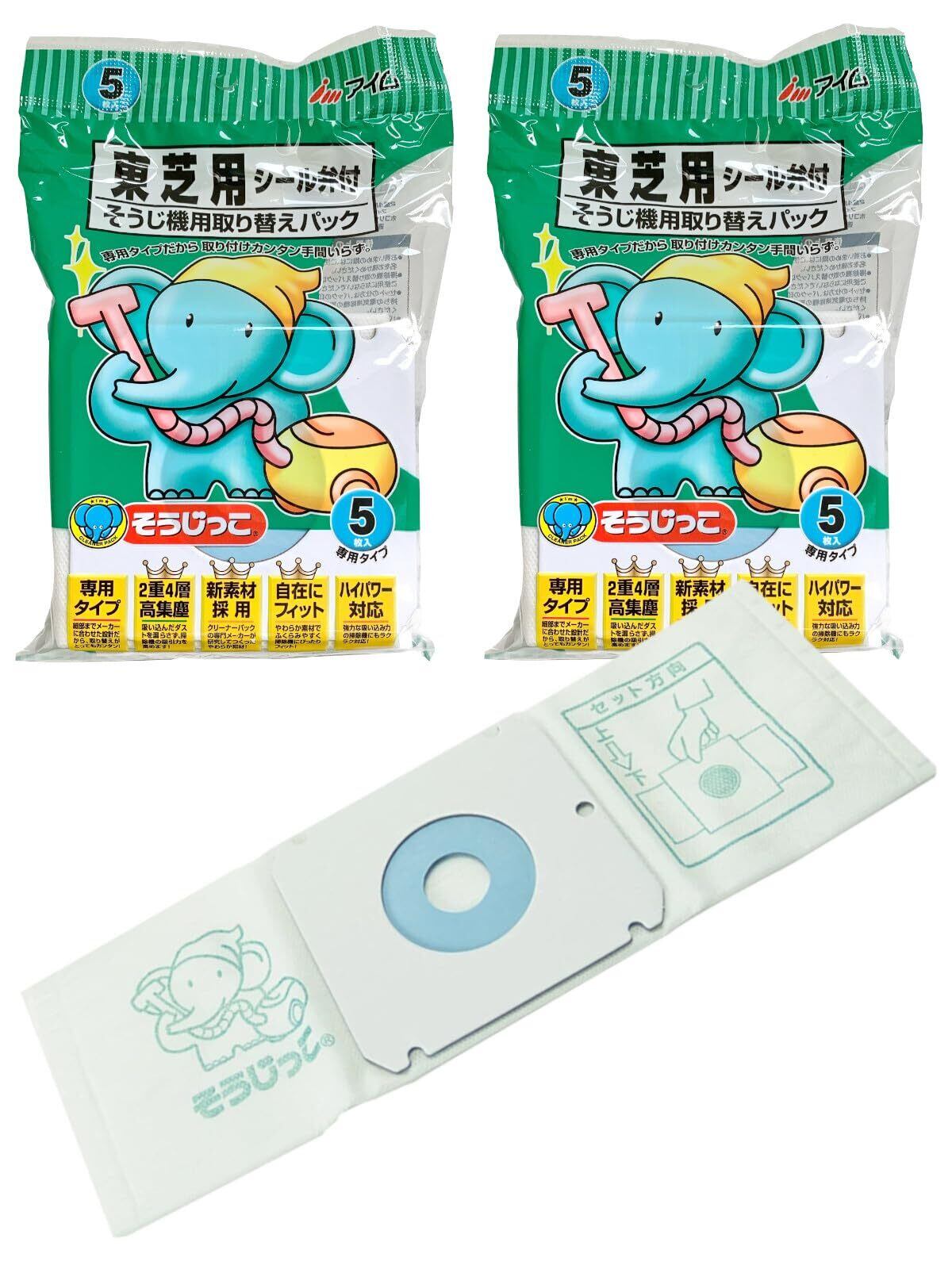 アイム 掃除機 取り替え 紙パック 東芝 ぞうじっこ 10枚 (5枚×2個セット) シール弁付き MC-03S ホワイト 商品サイズ (幅×奥行×高さ) 15×3.5×24cm