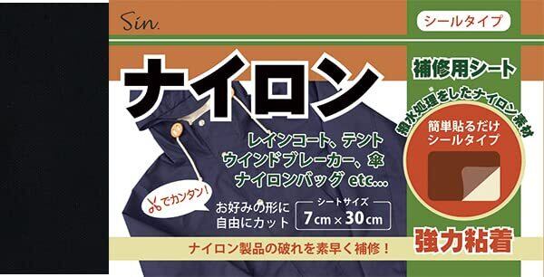 ナイロン用補修シート 7cm×30cm 撥水処理をしたシールタイプ (黒(ブラック))