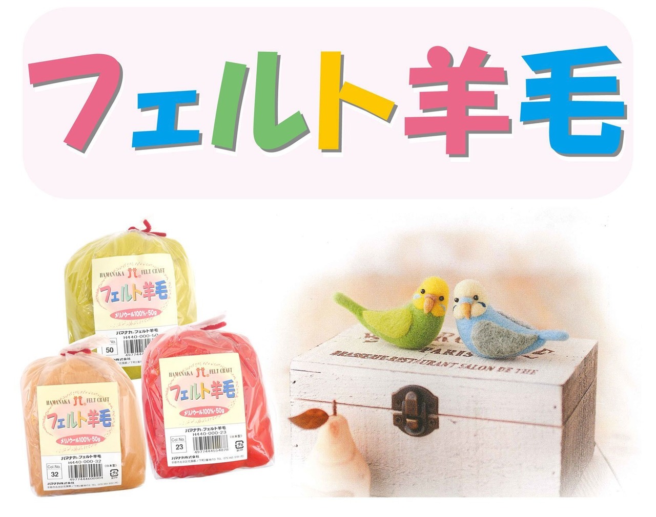 ハマナカ フェルト羊毛 ソリッド 50g col.1 H440-000-1 白・黒・茶色系