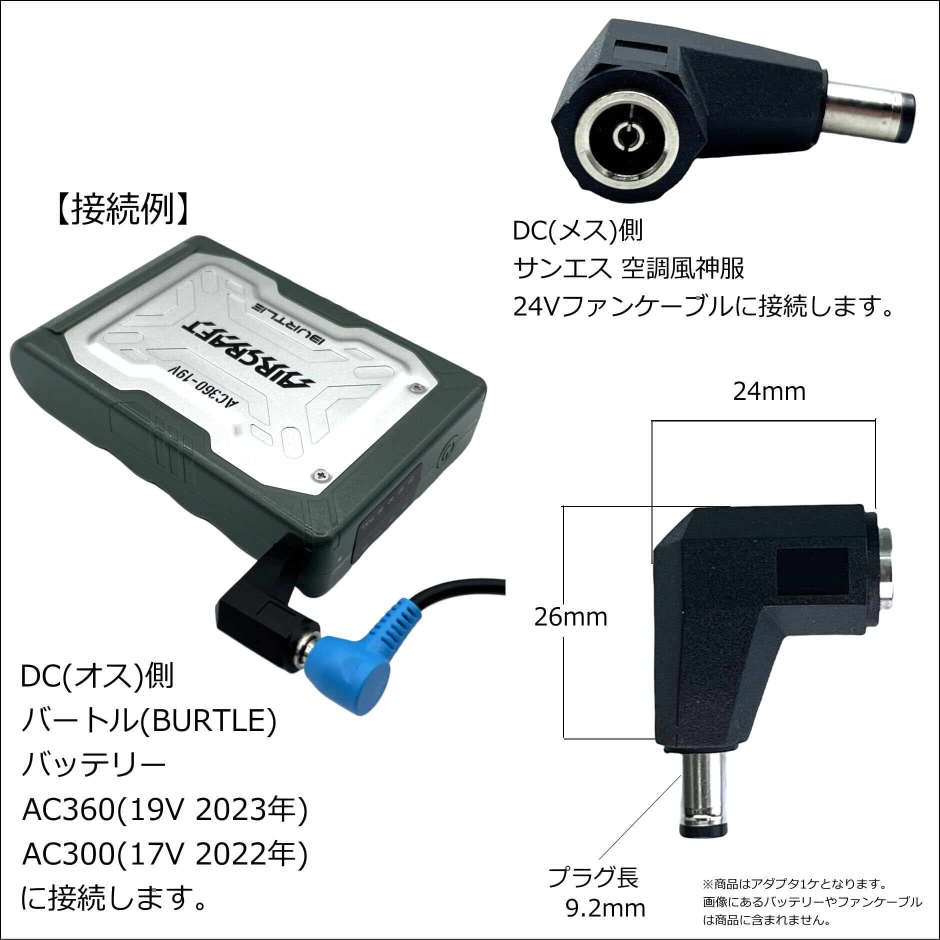 CNCTWO(コネクトツー) サンエス 空調風神服 ファン を バッテリーで使える変換アダプタ (サンエス24ファン-バートル22vバッテリー)