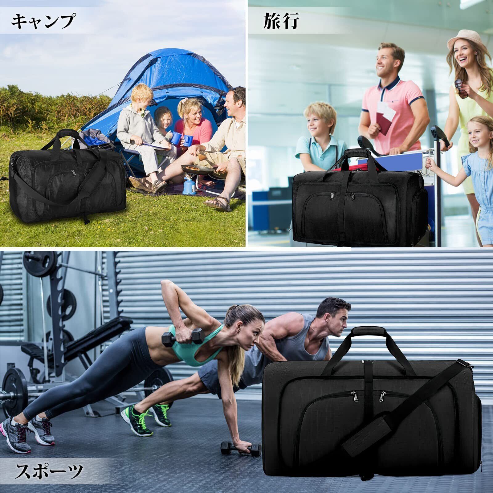 【在庫セール】折りたたみバッグ ボストンバッグ メンズ 大容量 YKKファスナー 修学旅行 旅行バッグ トラベルバッグ スポーツバッグ 5色 40L 65L 80L 斜め掛け スーツケース固定 靴収納ポケット 撥水加工 軽量 ジムバッグ 出張 black-80L | ニコニコSHOP