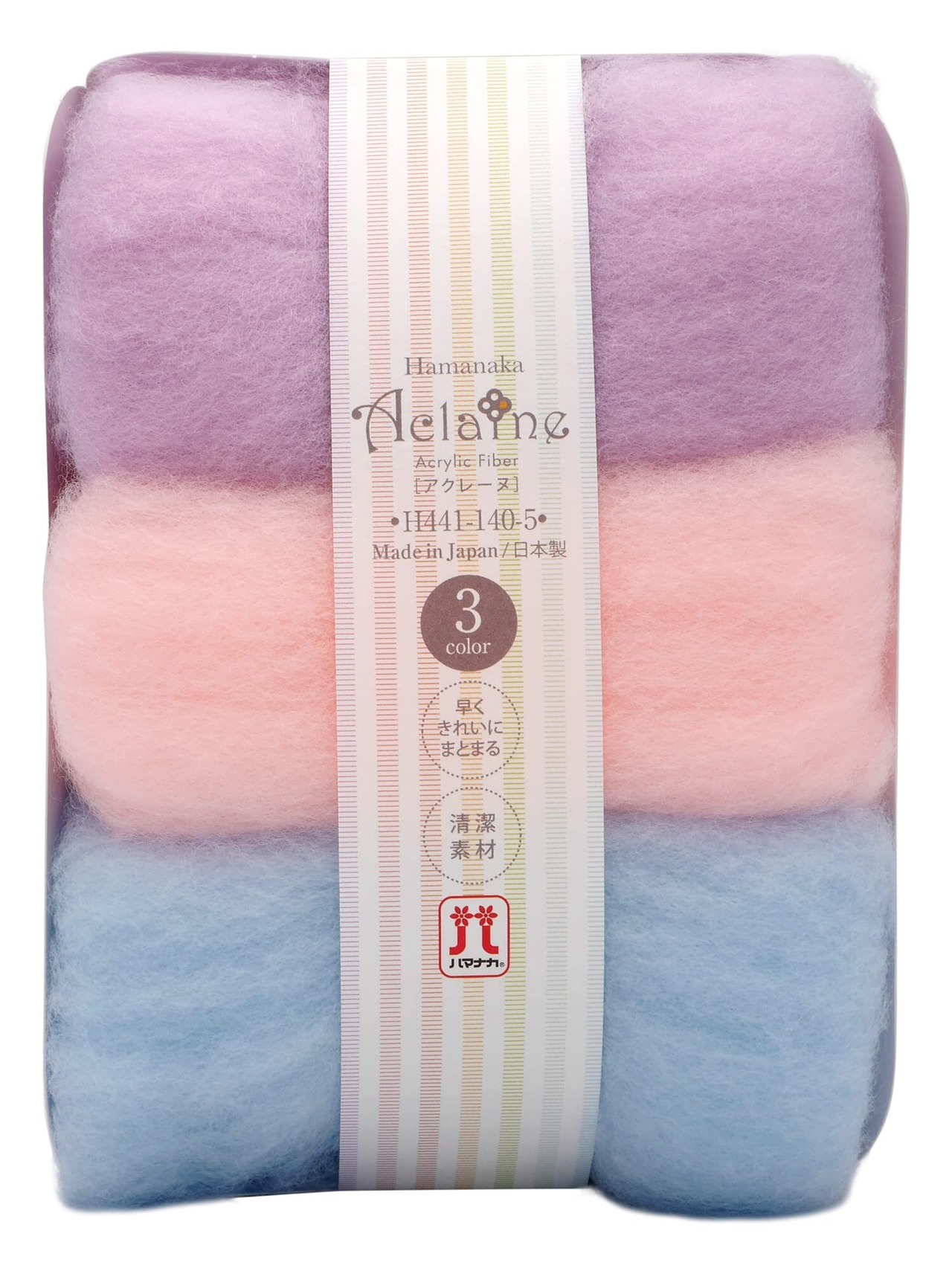 ハマナカ 羊毛フェルト アクレーヌ 3色セット 各色約8g入り パープル・ピンク・水色系 H441-140-5