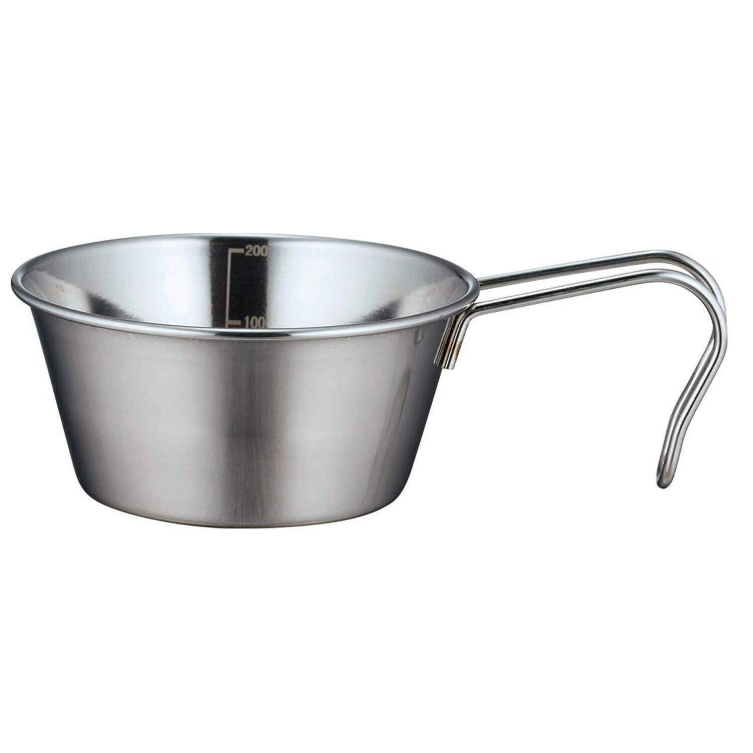 コップにも皿にも時には鍋にも、マルチに使えるアウトドアの必須アイテム、シェラカップ。調理時に便利な目盛り付き。