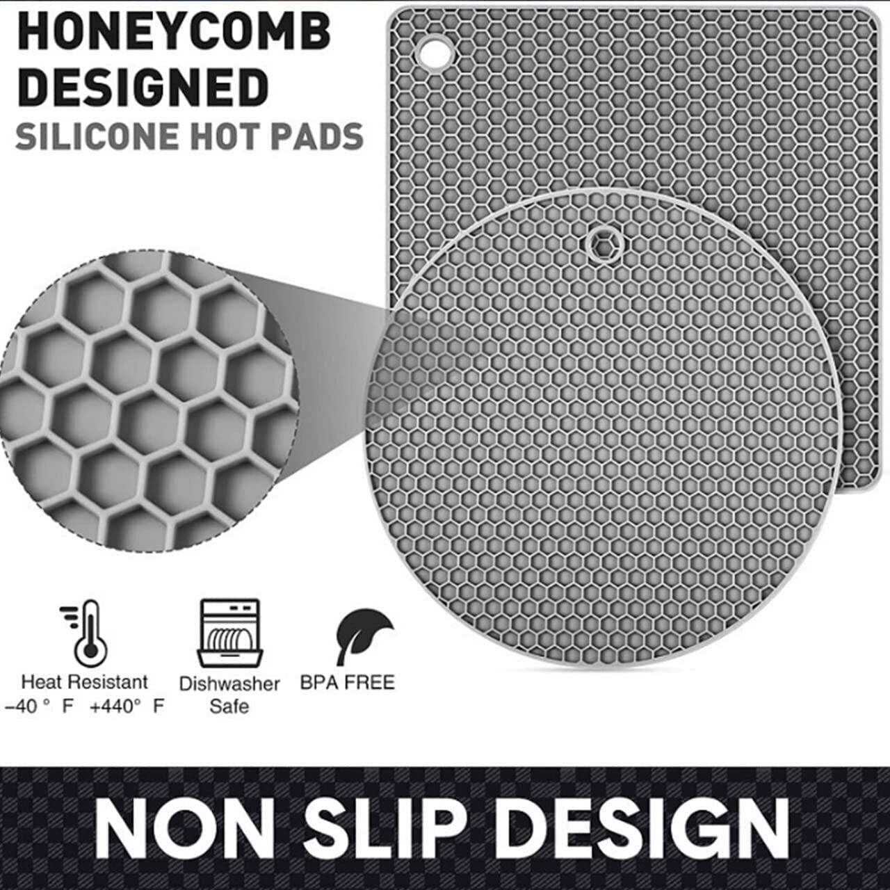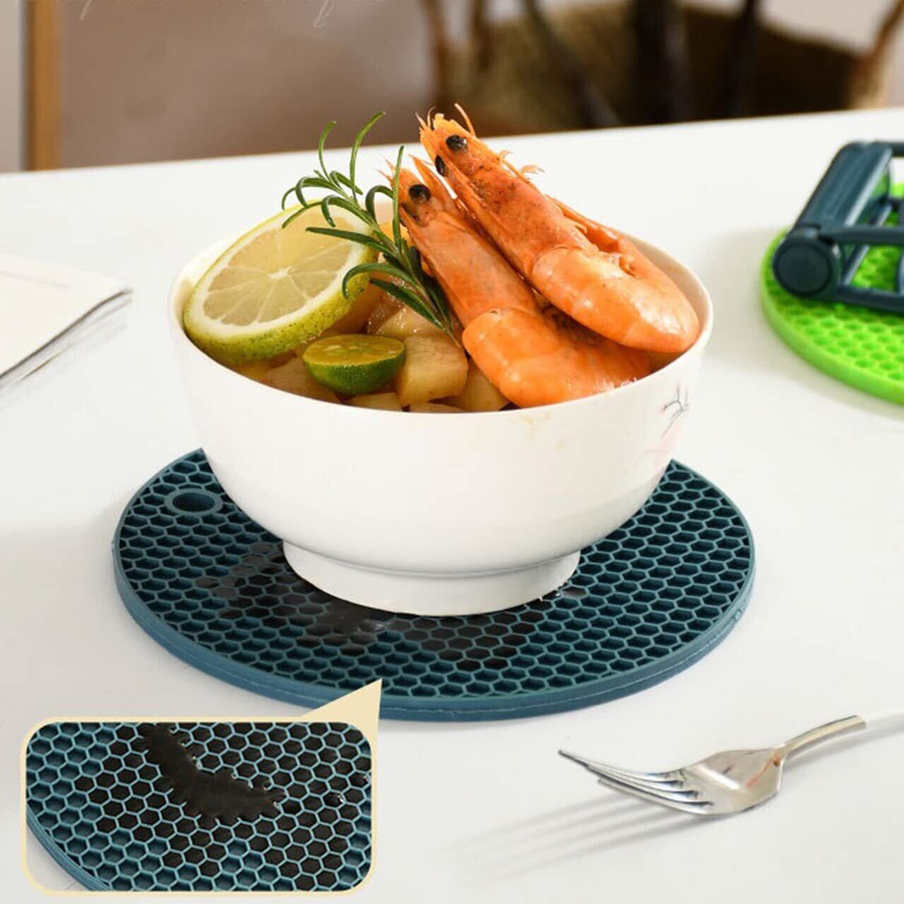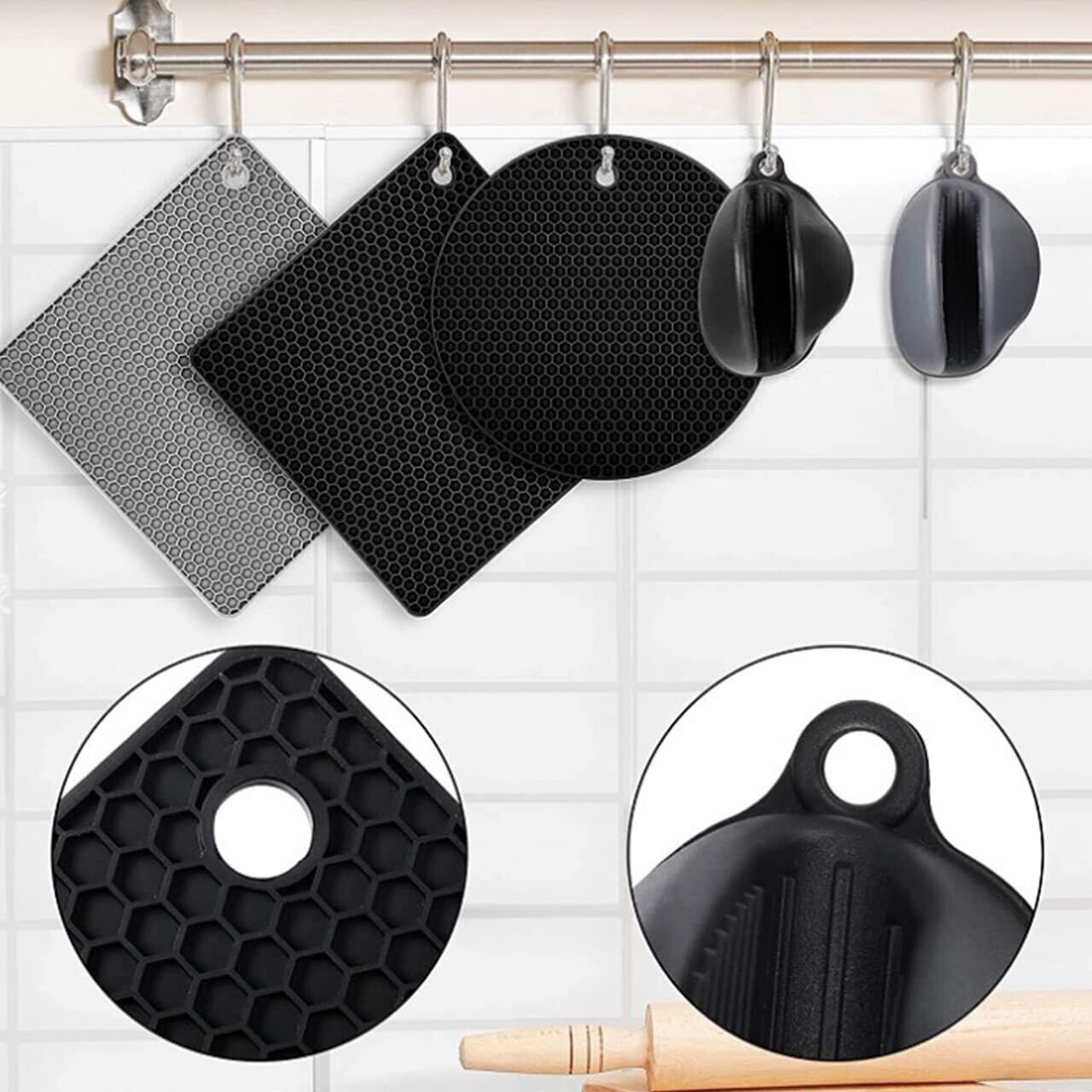 【厚手で丈夫&滑り止め効果】 厚みのあるシリコンが熱をしっかり遮断し、滑り止め効果も抜群。鍋やフライパンを安全に扱え、コースターやコップ敷きとしても使えます。