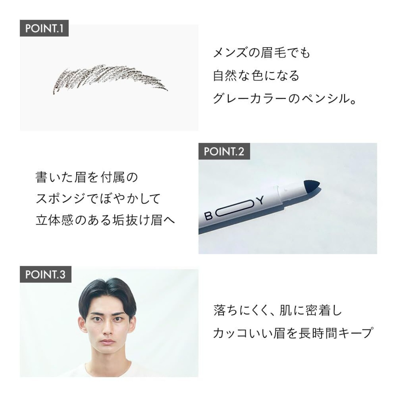 リップスボーイ アイブローペンシル (グレー) メンズ メイク 眉毛 初心者でも簡単 自然な眉 立体感 LIPPS BOY