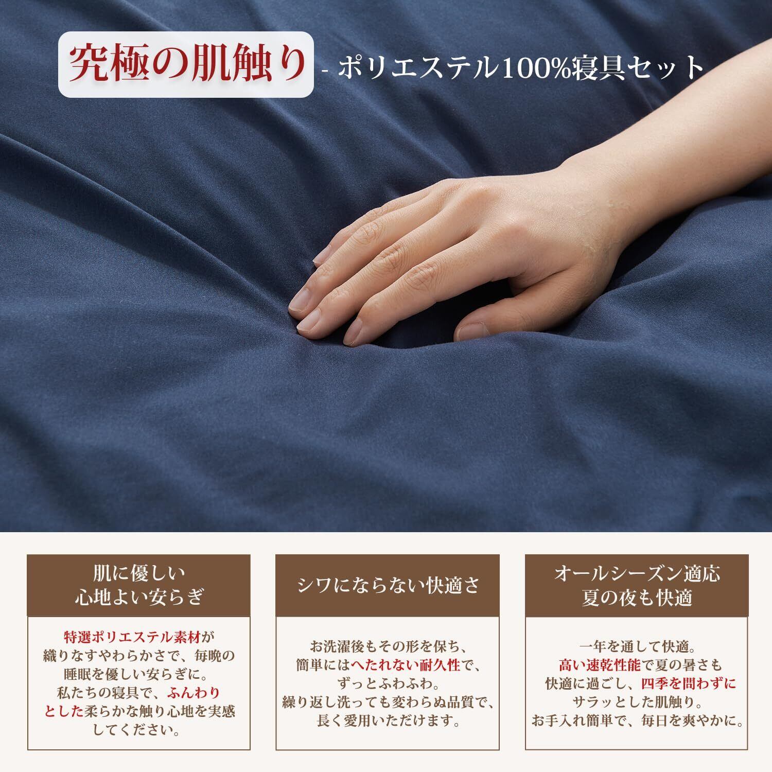 【新春セール】【 限定】クモリ(Kumori) 寝具カバーセット 布団カバーセット 洋式ベッド・和式布団兼用 掛け布団カバー ボックスシーツ 枕カバー 洗い替え速乾タイプ ピーチスキン加工 シングル・3点セット ネイビー | ニコニコSHOP