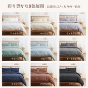 <セット内容&仕様>:「掛け布団カバー(1枚)」:片側に210cm全開ファスナー使用 / 布団留めひも8ヶ所付き ・ 「ボックスシーツ(1枚)」:全周ズレ防止ゴム付き / 通常サイズより大きめなので、高さ3-28cmの敷き布団とマットレスの底まで包む可能 ・ 「枕カバー(1枚)」:封筒型で、出し入れが簡単
