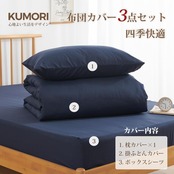 【 限定】クモリ(Kumori) 寝具カバーセット 布団カバーセット 洋式ベッド・和式布団兼用 掛け布団カバー ボックスシーツ 枕カバー 洗い替え速乾タイプ ピーチスキン加工 シングル・3点セット ネイビー