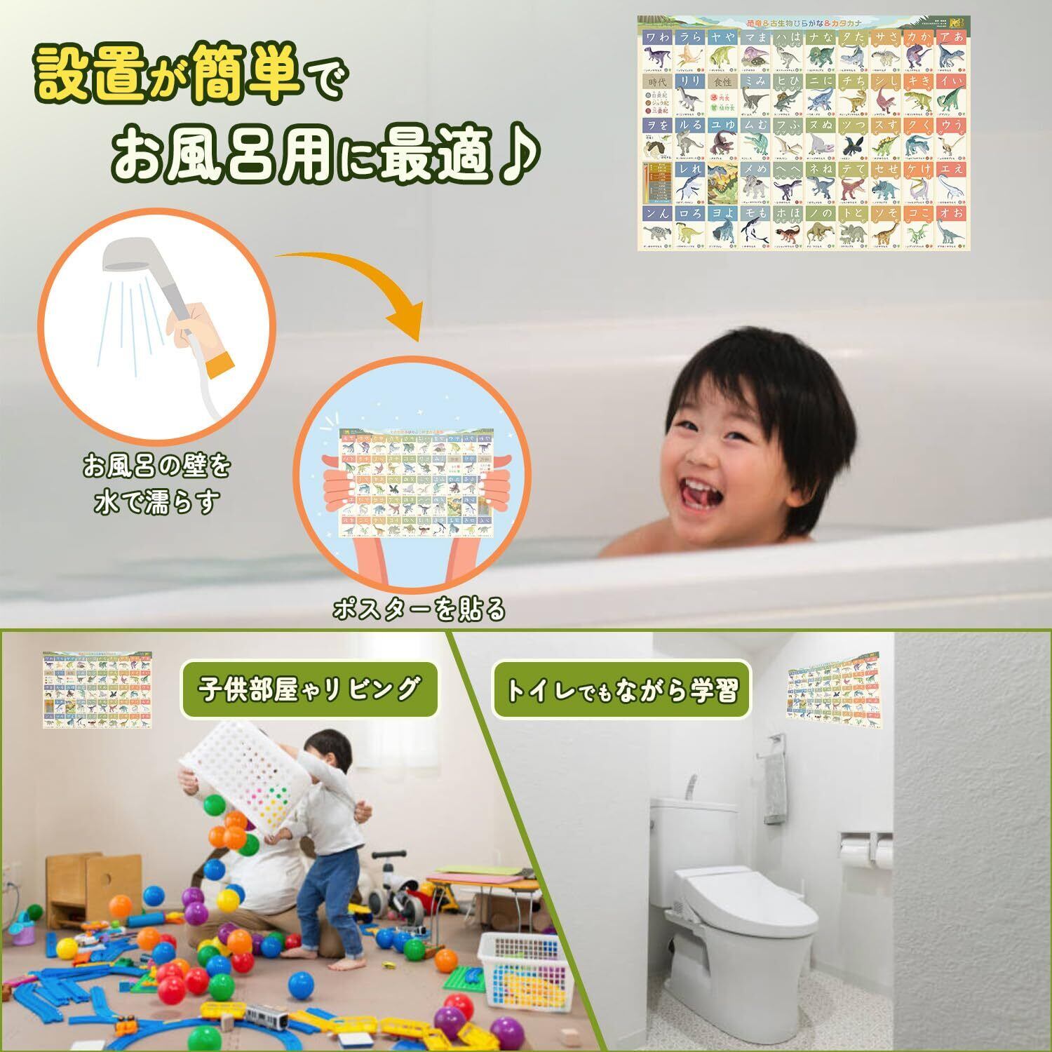 お風呂学習ポスター ひらがな・カタカナ・ABC (⑥恐竜ひらがな・カタカナ(中 42×30cm))