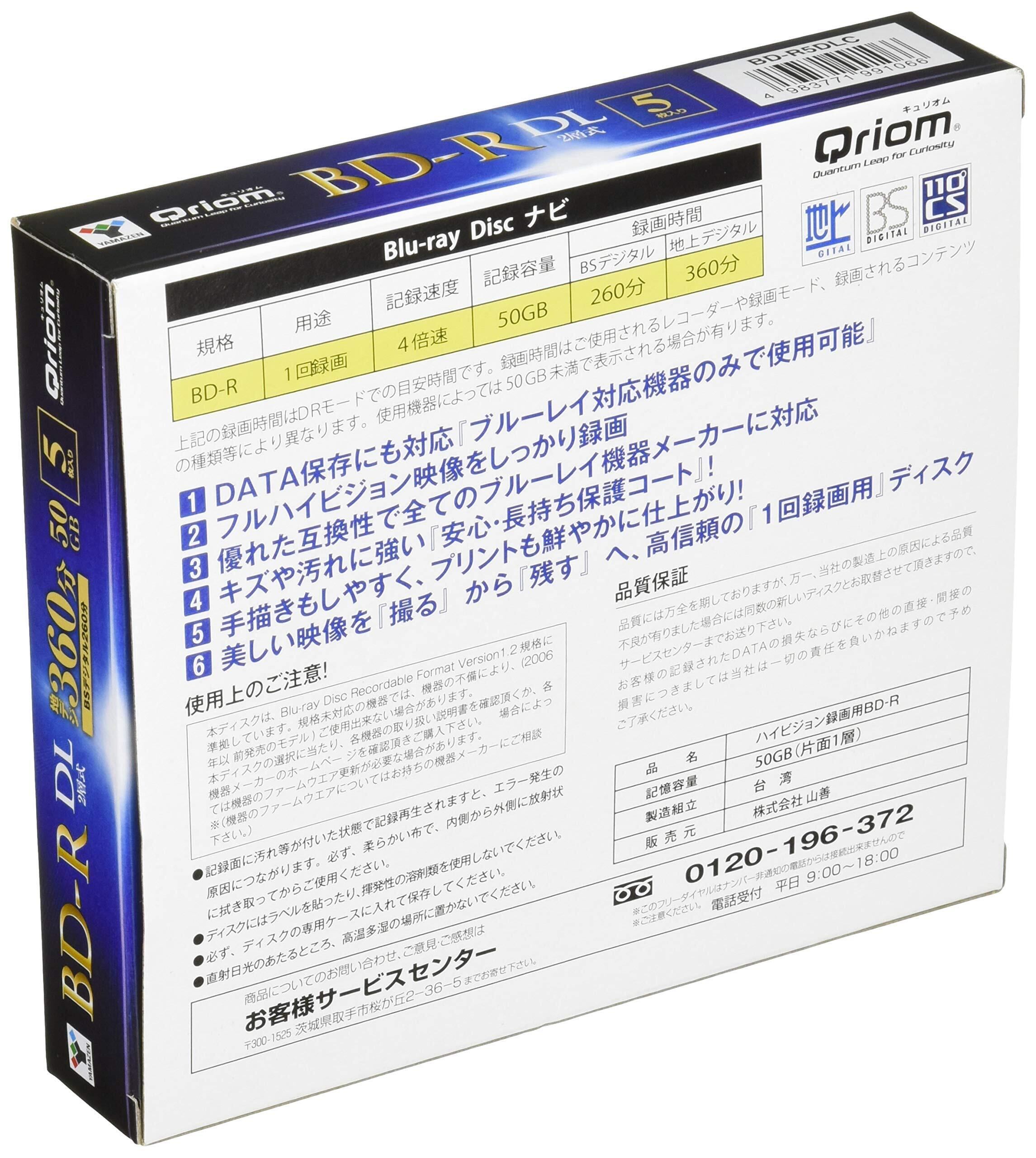[山善] BD-R ブルーレイディスク 1回録画用 フルハイビジョン録画対応 デジタル放送録画 1-4倍速 5枚入り 50GB ケース付き BD-R5DLC