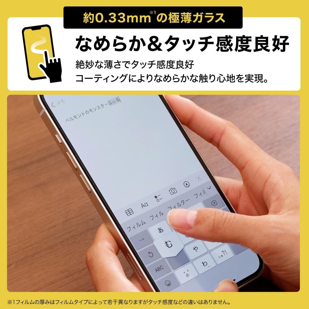 【指紋・汚れ防止】防汚コートにより指紋や汚れが付着しにくく、拭き取りやすくなります。 【スムースタッチ加工】特殊コートにより表面は滑らか。スムーズな指すべりで操作性が向上します。 【ラウンドエッジ加工】エッジを丸くして角割れを防止すると同時に、ひっかかりのない滑らかな触り心地を実現しています。