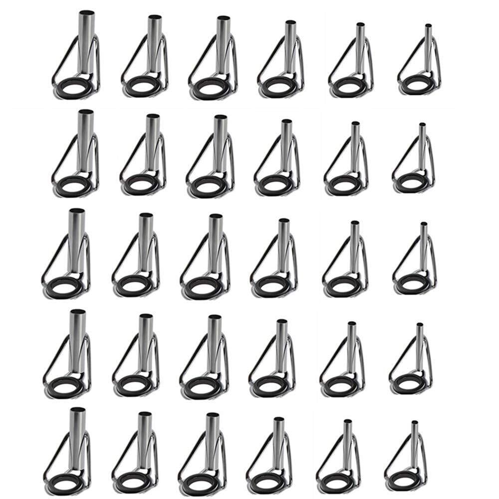 LNJLQW トップガイド ロッドガイド ステンレス 釣り竿 穂先 ロッドの修理 交換 釣竿 30点セット