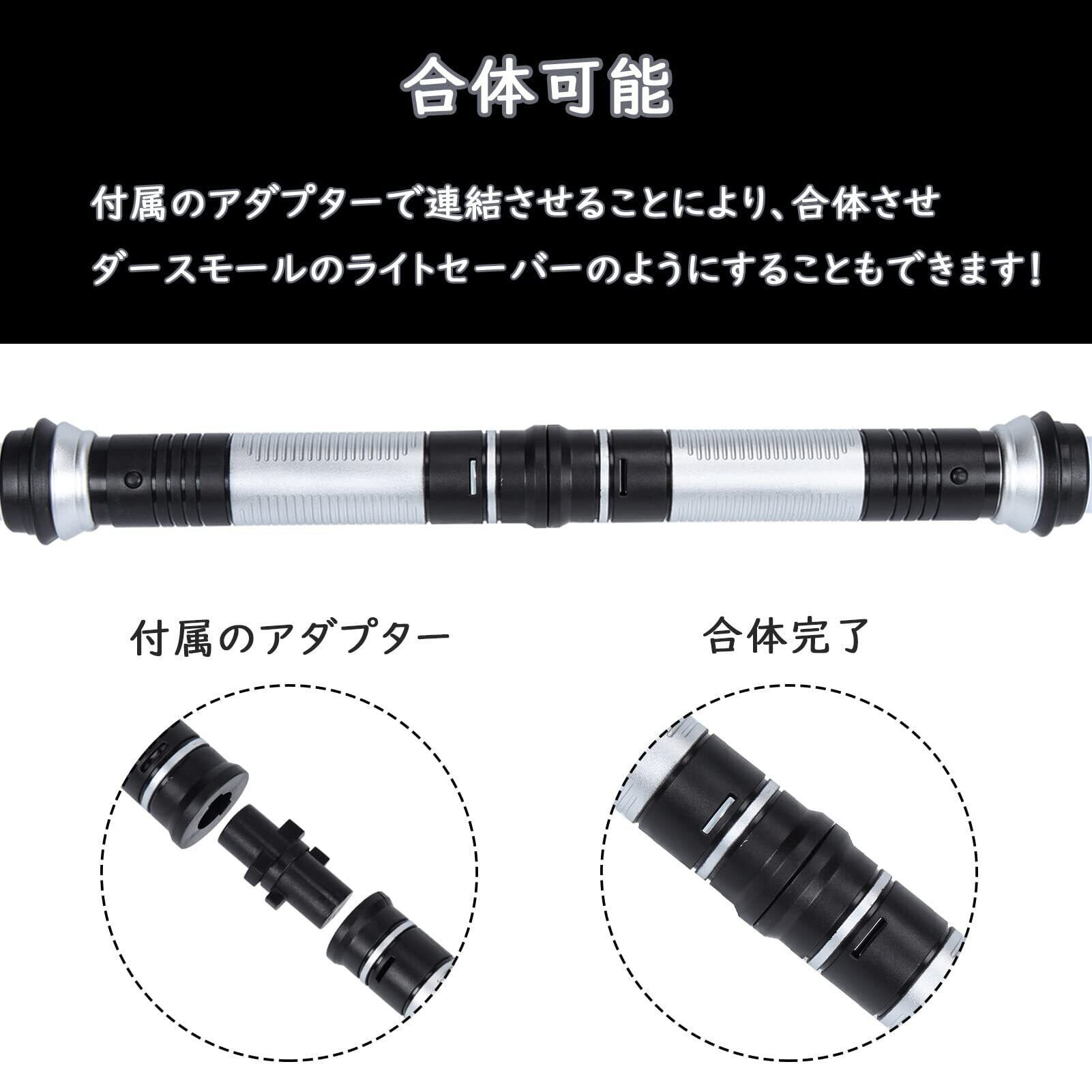 【合体可能】2本セットですので、付属のコネクタで連結させることにより、二刀流でも遊べるし、合体させダースモールのライトセーバーのようにすることもできます!