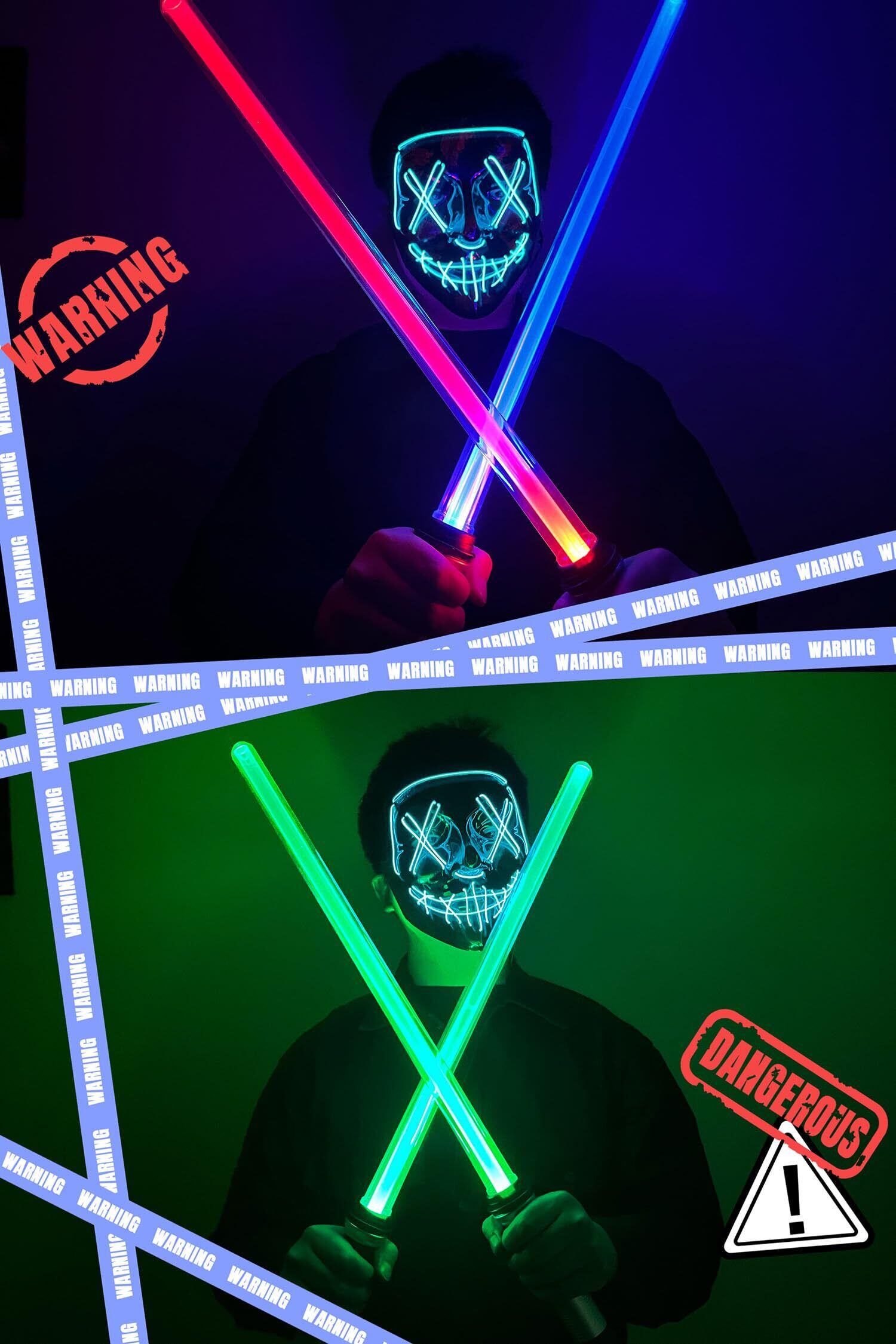 【在庫セール】LED ライトセーバー 2本セット 光るおもちゃ 光る刀 光る剣 コスプレ 伸縮式 合体可能 7色 光るソード カラーチェンジ led パーティーグッズ (より透過性+伸縮不可+バッテリー付属) | ニコニコSHOP