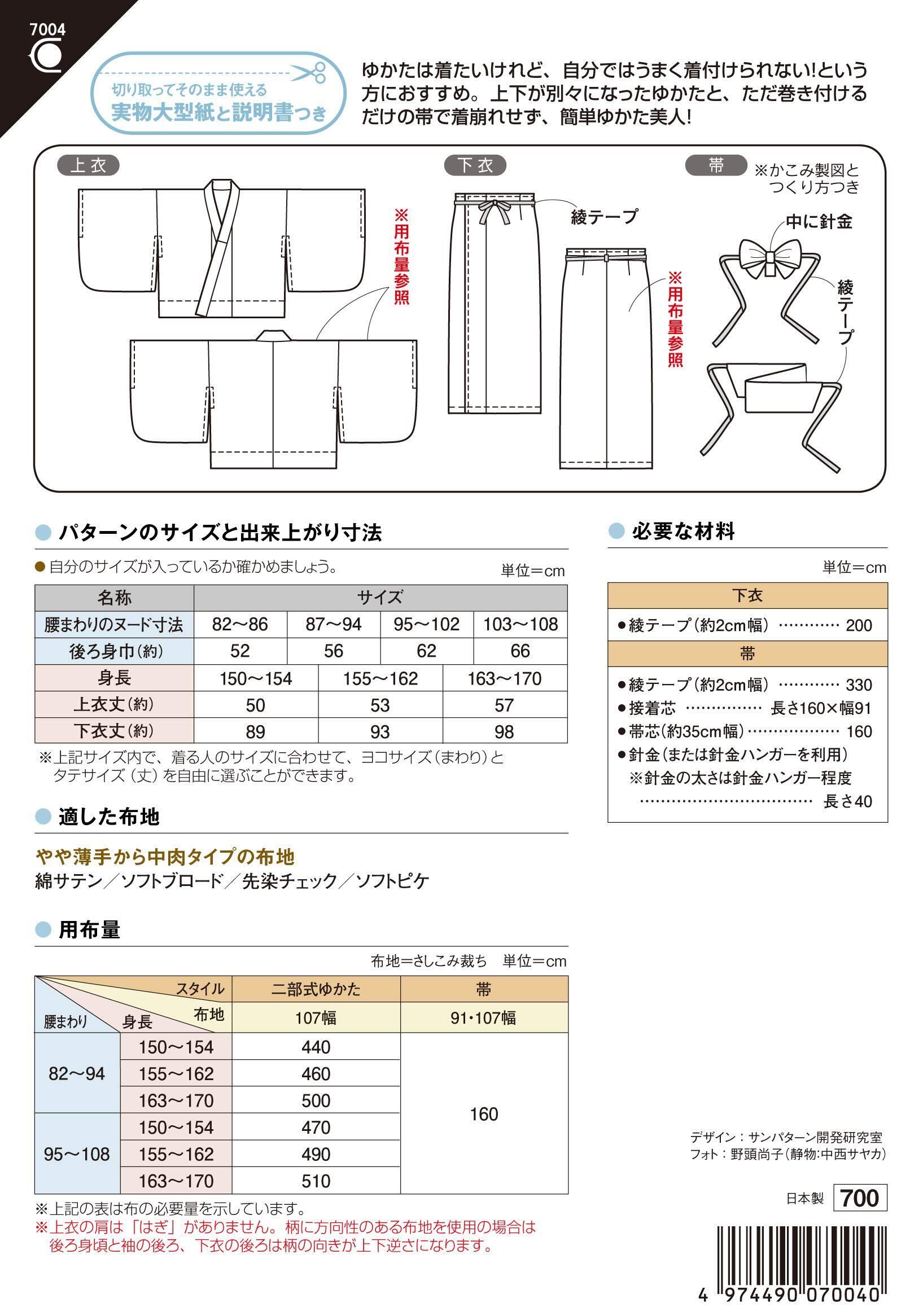 サン・プランニング 型紙 パターン おとなの二部式ゆかた 7004