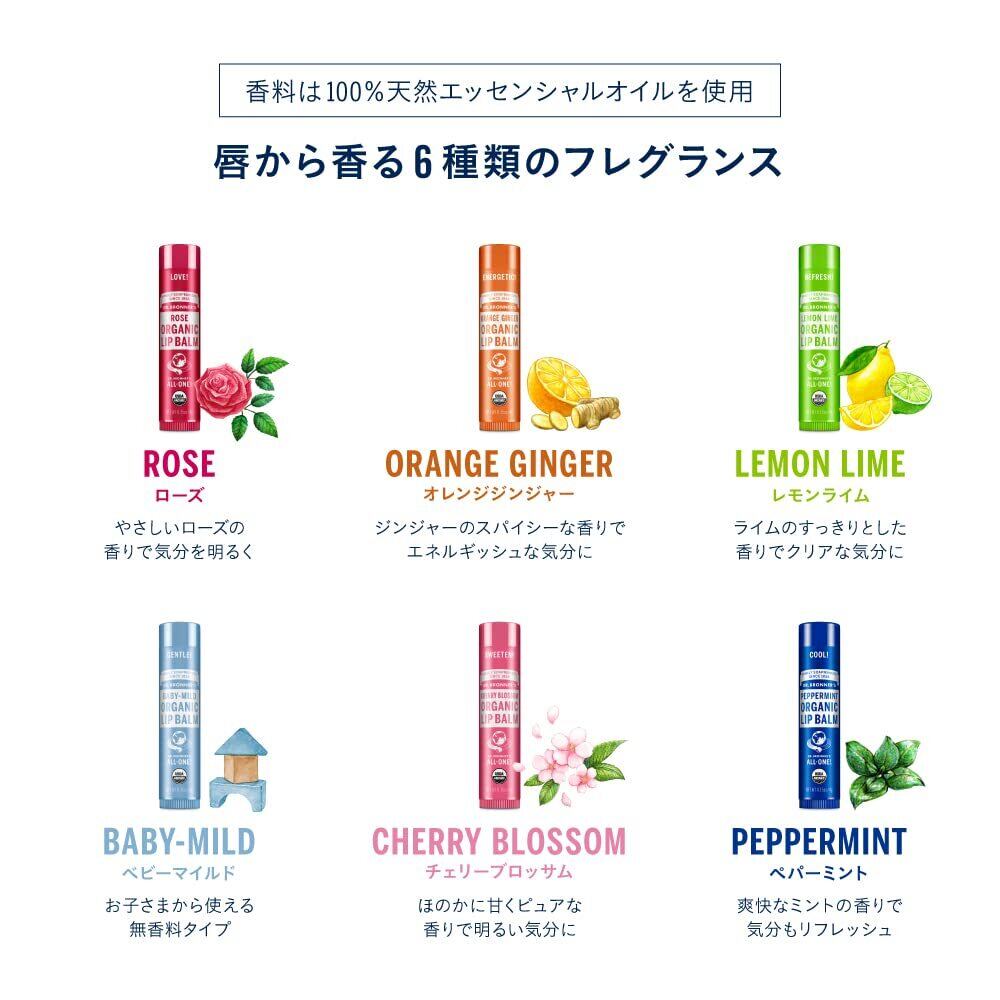 ドクターブロナー オーガニックリップバーム CH(チェリーブロッサム) ほのかに甘くピュアな香り 植物オイル リップクリーム 唇パック 4g