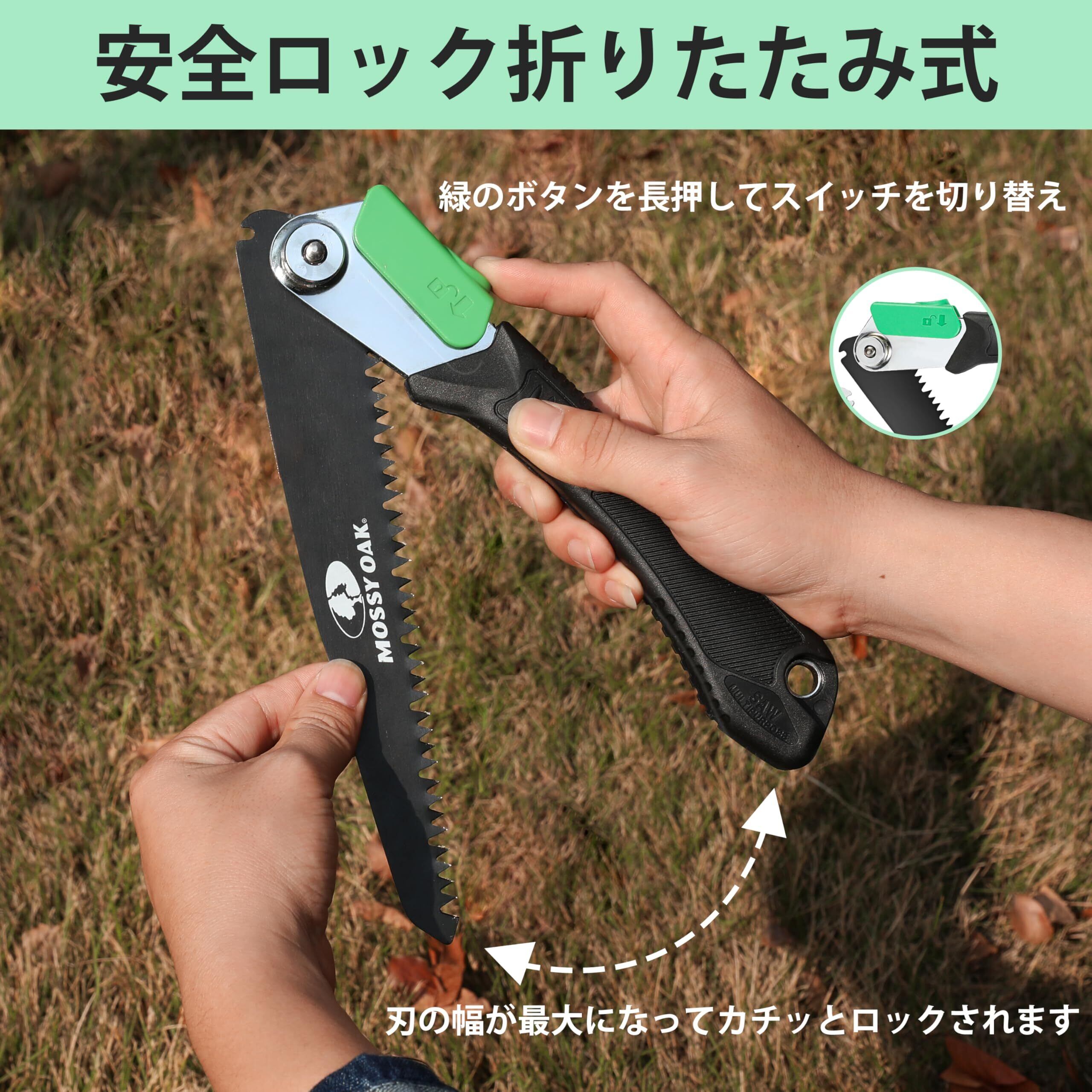 【新着商品】MOSSY OAK ノコギリ 折込のこぎり 剪定鋸 折込鋸 替え刃3枚 折り畳み式 替え刃式 生木用 木工用 硬質プラスチック用 鉄工用替刃付き 多目的廃棄物 粗大ゴミ 安全ロック 専用収納ケース付き | ニコニコSHOP