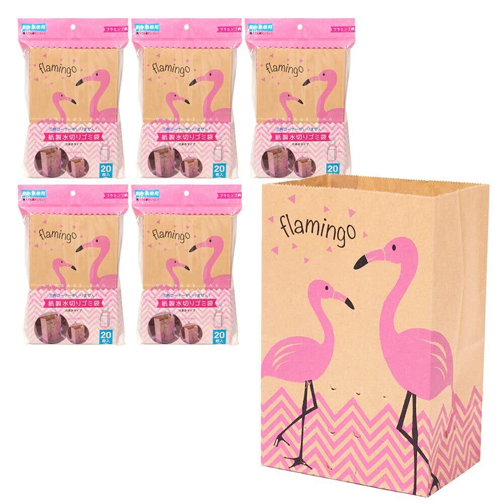 【在庫処分】ネクスタ 水切り ゴミ袋 紙製 フラミンゴ柄 縦20×横13cm(底マチ9cm) 三角コーナー がいらない 水切り袋 日本製 自立 クラフト紙 - 20枚入5個セット | ニコニコSHOP