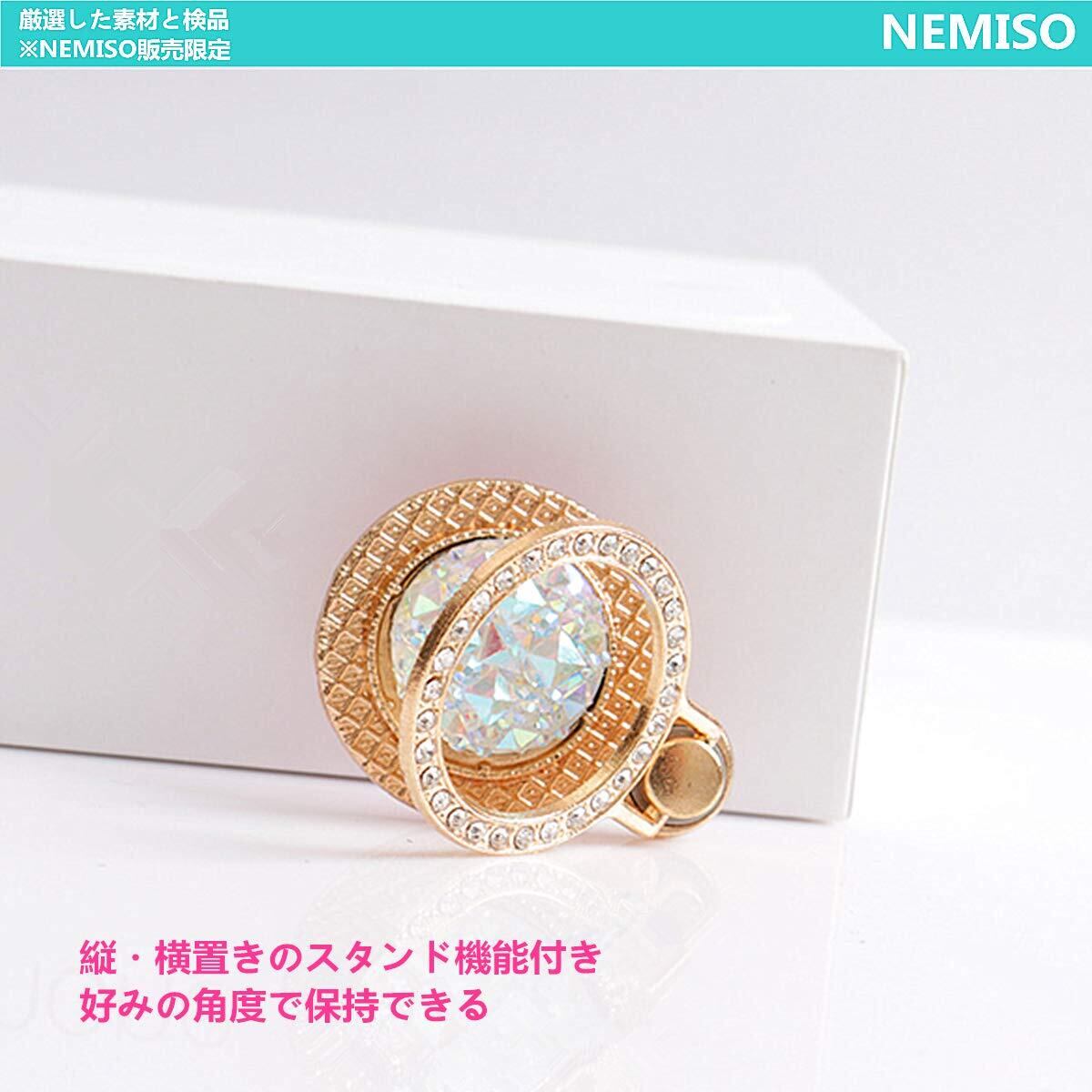 NEMISO スマホリング バンカーリング 懐中時計型 キラキラ ダイヤモンド付き ホールドリング スマホスタンド スマートフォン タブレット ホルダー 薄型 指輪 リング 携帯アクセサリー スタンド機能 落下防止 車載ホルダー 360回転 iPhone/Android各種他対応 (ゴールド)