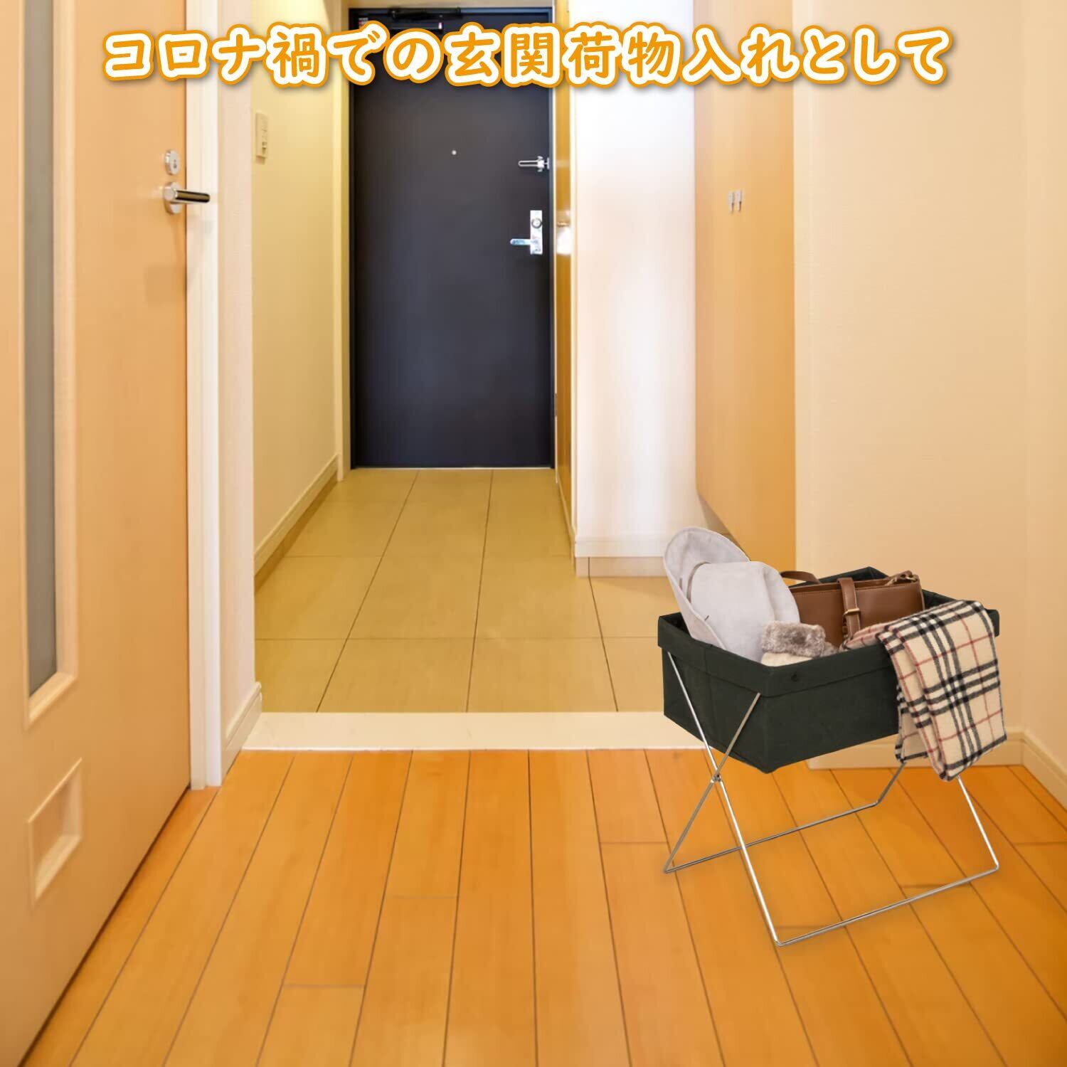 折り畳み式で、場所を取らずにスリムに収納可能。底板付きで、中のものを安定して収納できます。しっかり厚みのある丈夫な生地で、使う場所を選びません。