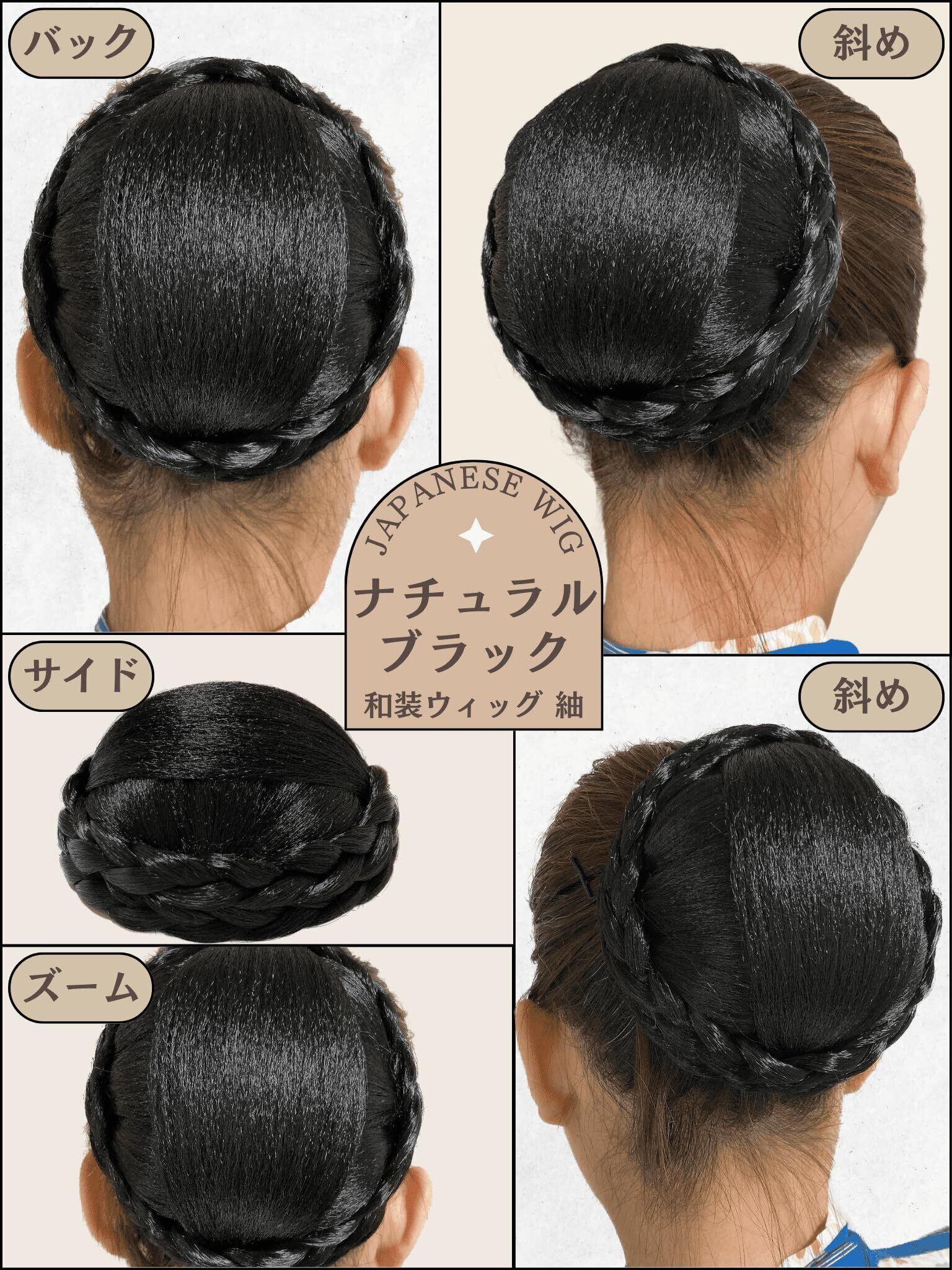 【在庫処分】Luce brillare 和装ウィッグ シニヨン お団子 和装 着物 部分ウィッグ つけ毛 髪飾り 自然 盛り髪 お茶会 結婚式 浴衣 成人式 入学式 編みこみ ポイントウィッグ レディース 女性 日本舞踊 和風 カツラ シニオン 和装ヘアピース 留袖 フォーマル まとめ髪 (ナチュラルブラック, 紬) | ニコニコSHOP