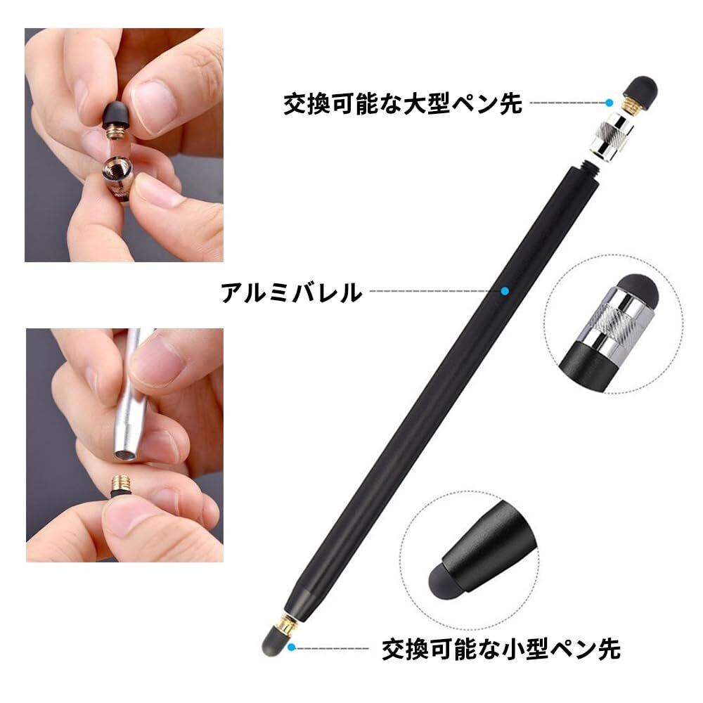 【2 In 1デザインの高感度スタイラス】ペンの両側に2つの異なるサイズのラバーチップ、異なるニーズを満たします。スムーズな描画と高感度を提供します。もう大きな指に悩まされることはありません。