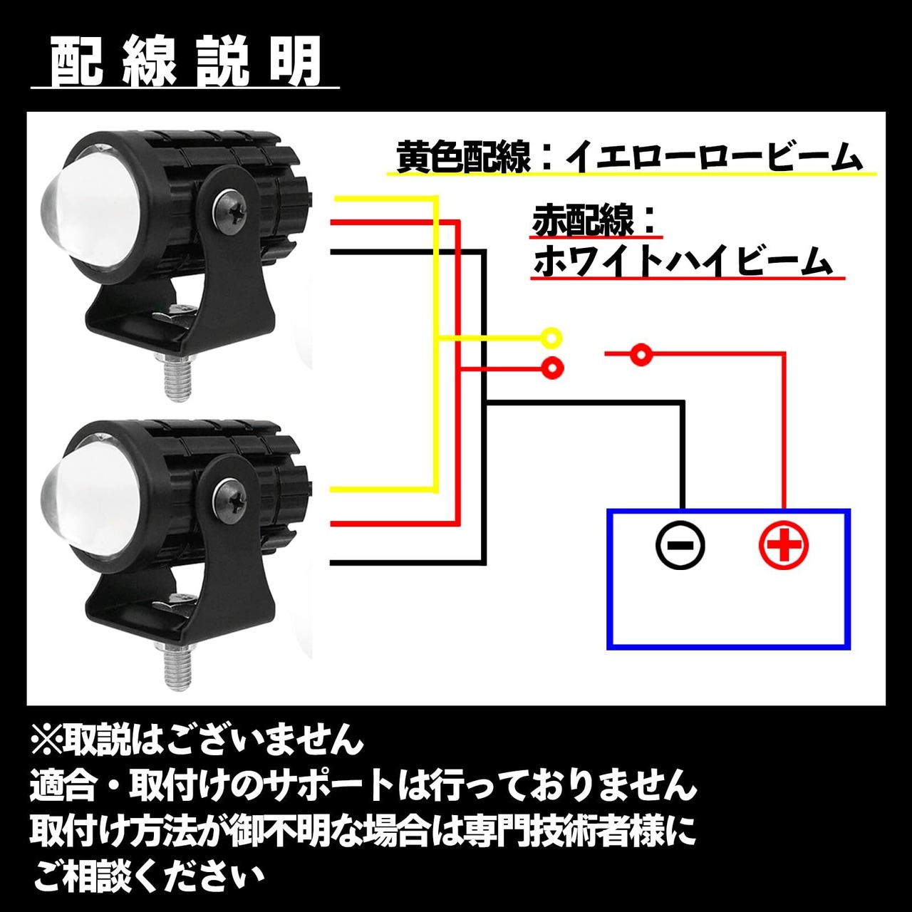 led フォグランプ バイク 用はハイビーム時はホワイト発光により遠くを、ロービームのイエロー発光時は雨や霧の視界を確保するのに役立ちます。(取付け用ビス:Ⅿ6×16 2個 ナット2個)