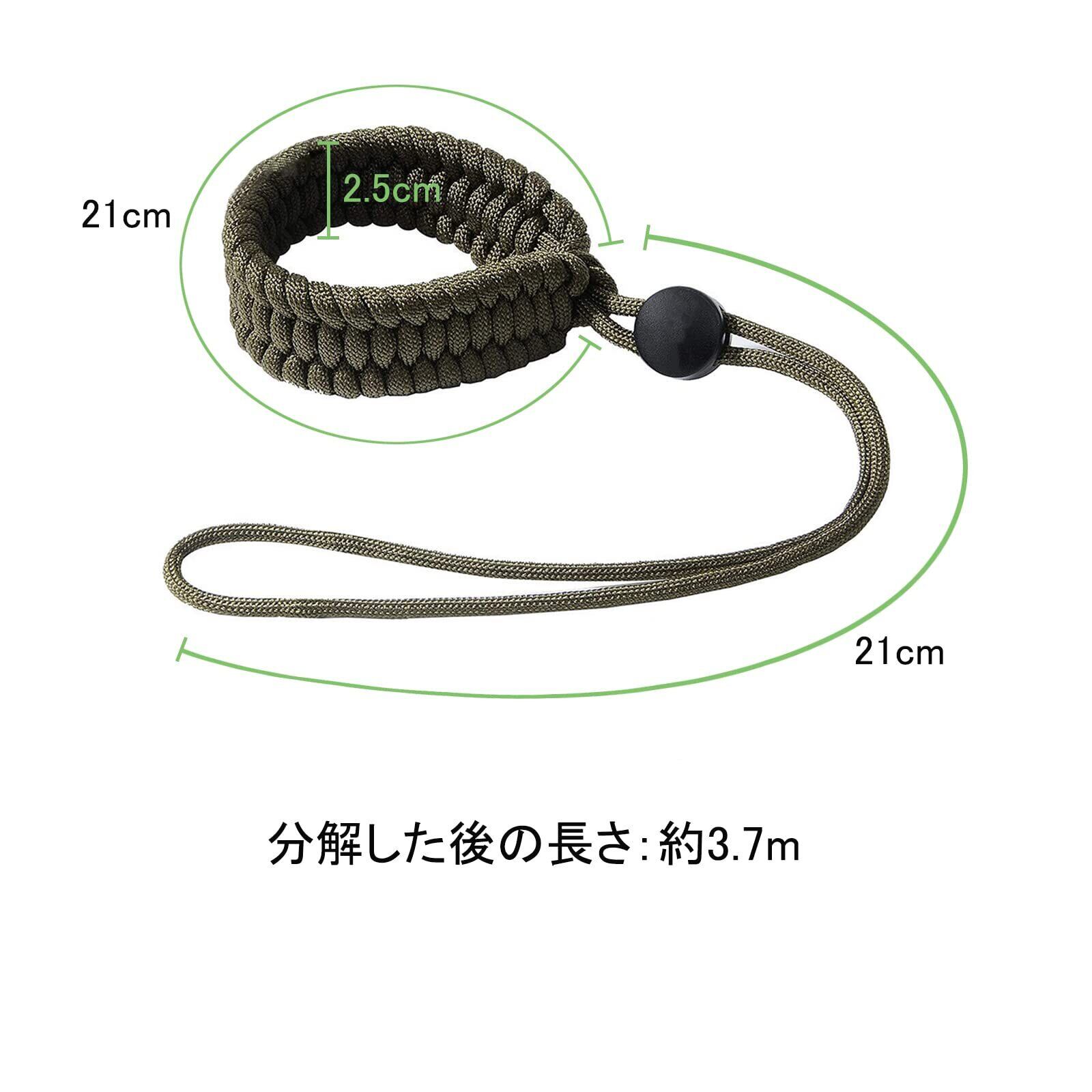 素材:パラコード; サイズ:21*2.5cm; 分解した後の長さ:約3.7m; 重量:約10g