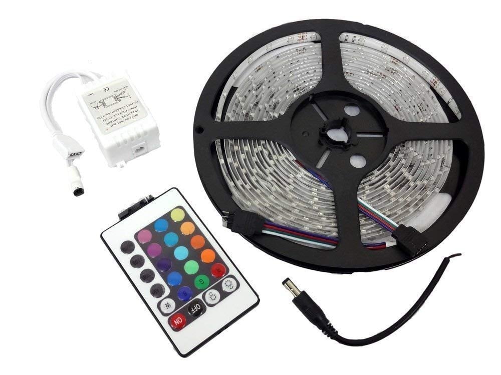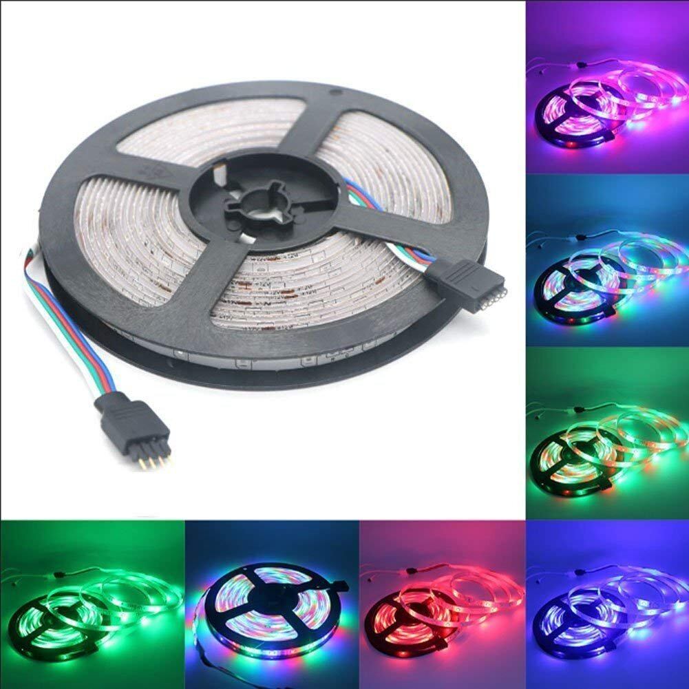 Parishop LEDテープ ライト 5m 300連 正面発光 12V 防水 16色 リモコン 配線付 カット可 車 バイク SMD2835 3528 切断可能強力粘着両面テープ (RGB+リモコン)