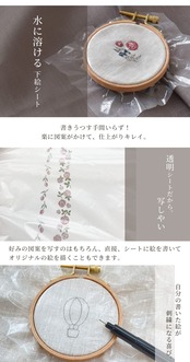 水性ペンで紙に書くような感覚で使える。刺繍の図案を写す作業がラクラクはかどる魔法のシートです。