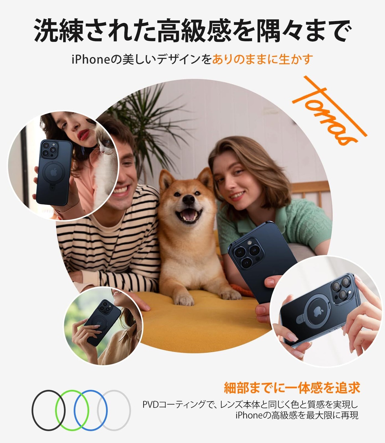 【あらゆるケースにピッタリ!貼りやすい!】iPhoneのカメラサイズを元にし、精密加工で作られた独立設計のiPhone 15Pro・15Pro Max用レンズフィルムでは、あらゆるケースに干渉しなく、お気に入りのケースを好きなだけ選べる。組み合わせて使用し、シンプルな美しさで、あなたのセンスをさり気なく表現!押してはめ込み、外し、終了!驚くほどほどの貼りやすい!成功率100%、初めてフィルムを貼る素人でも、楽に貼り付けできる。さらに、Tora-Airless特殊粘着剤を採用し、レンズ本体とピッタリ密着!