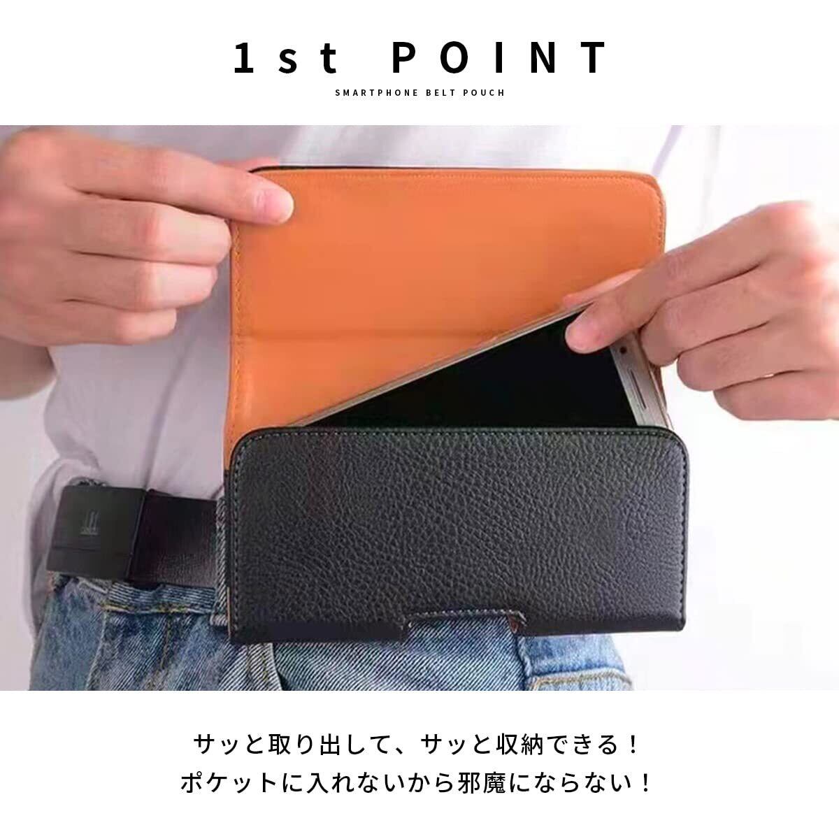 VERISSY スマホポーチ ベルト ホルダー ケース スマートフォン iPhone 5.5インチ 4.7インチ Android 落下防止 横型 ウエストポーチ (5.5インチ, スムース)