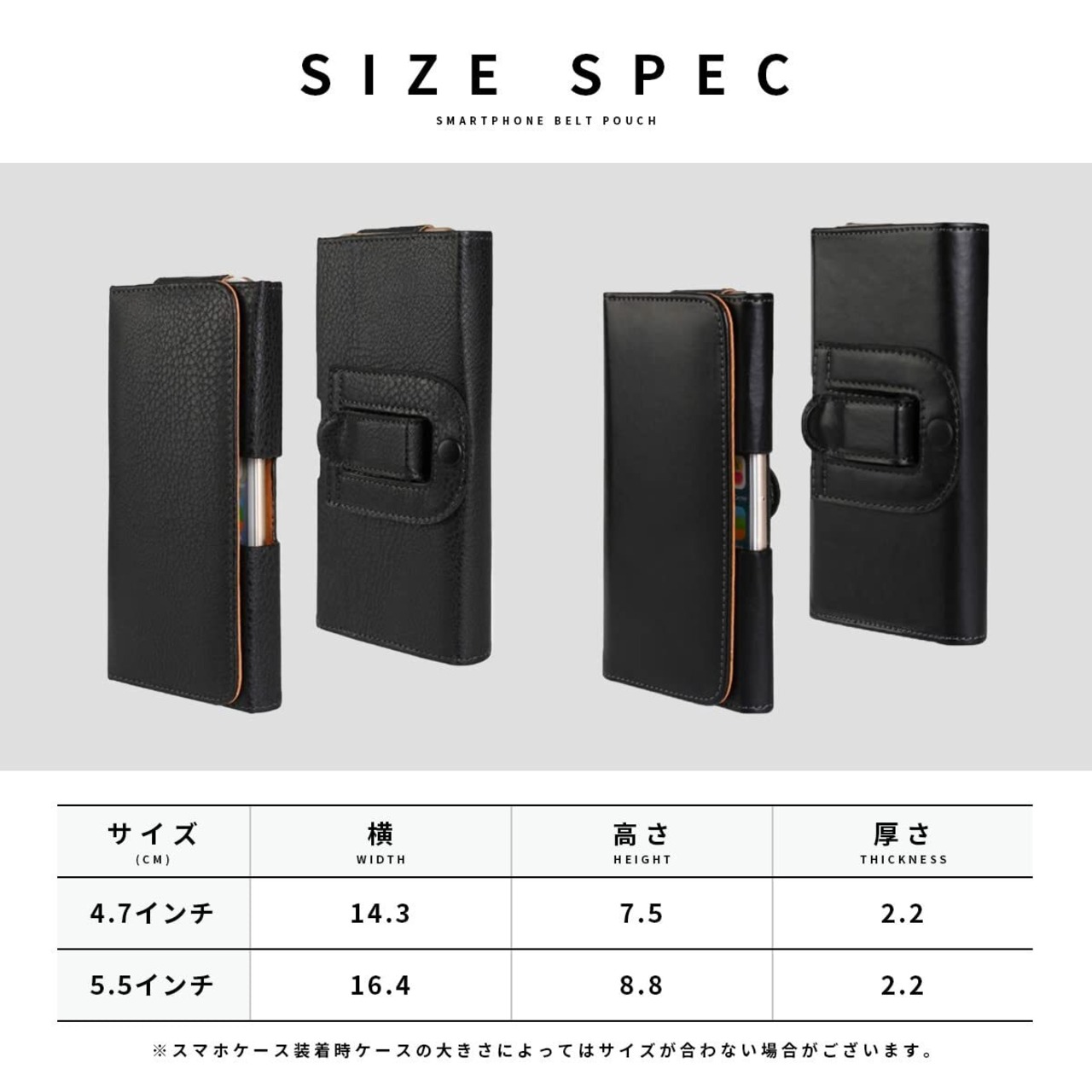 ポケットでかさばるスマホのストレスから解放してくれるスマホポーチ。 横向きに収納する仕様のベルトホルスター型スマホ収納ケースが登場! 使い方は超簡単!ベルトに通すだけ!ベルトループとボタン付きフックの二重仕様で落下を防止します。 4.7インチの参照サイズ:14.3cm(長さ)×7.5cm(幅)×2.2cm(厚さ) 主な対応機種:iPhone SE(第3世代) iPhone SE(第2世代) iPhone 8 iPhone 7 iPhone 6/6s等 5.5インチの参照サイズ:16.4cm(長さ)×8.8cm(幅)×2.2cm(厚さ) 主な対応機種:iPhone 13 mini iPhone 12 mini iPhone 8 Plus iPhone 7 Plus iPhone 6 Plus/6s Plus等 ※スマホケース装着時ケースの大きさによってはサイズが合わない場合がございます。