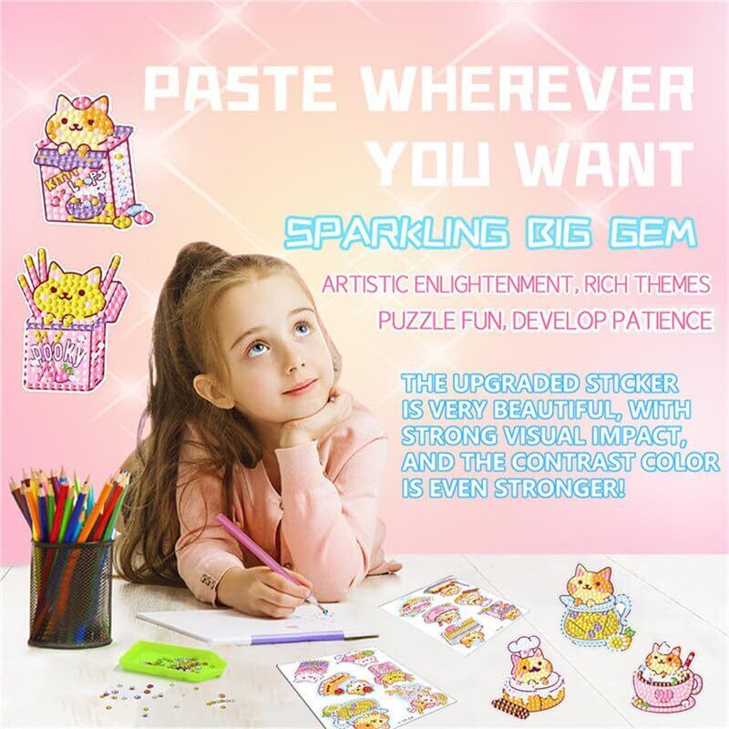 5D DIY キッズ ダイヤモンド ペインティング ステッカー セット 楽しい DIY ダイヤモンド アート ステッカー キッズ アート ステッカー DIY クリエイティブ ダイヤモンド ステッカー 子供 大人 初心者への素敵なギフト (子猫 ダイヤモンド アート ステッカーB)