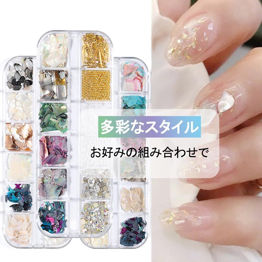 【特価商品】DFsucces ネイルパーツ 36種 天然貝シェル シェルストーン ストーン ネイル石パーツネイル レジン ジェルネイル 貝殻石 貝殻片 ダイヤモンド パール ネイル用品 収納ケース付き(3ボックス) | ニコニコSHOP