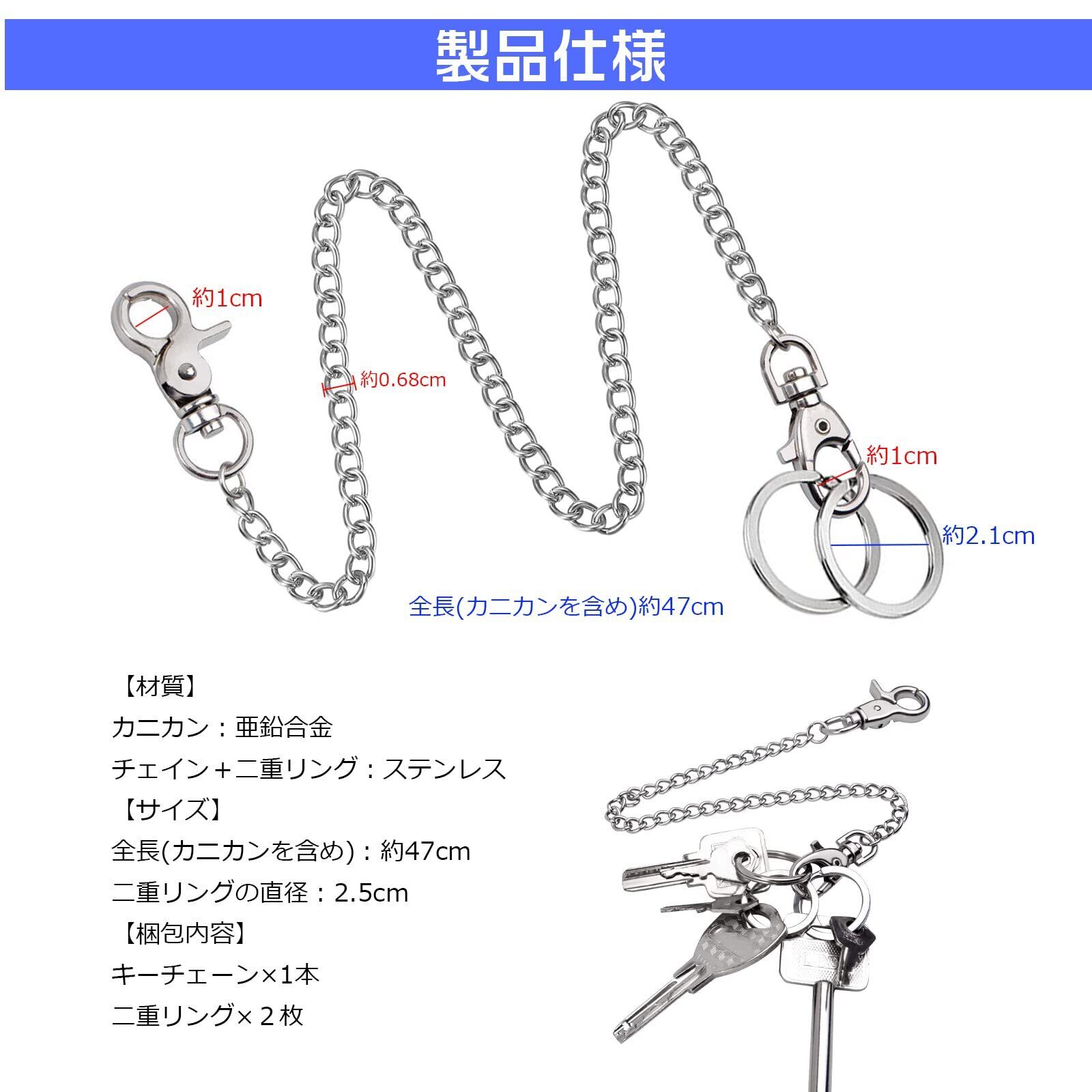 キーチェーン ウォレットチェーン キーホルダー チェーン 二重リング付き ズボンチェーン ウエストチェーン メンズ チェーン ステンレス カニカン 亜鉛合金 おしゃれ Mesanda (約40.5cm 1本セット)