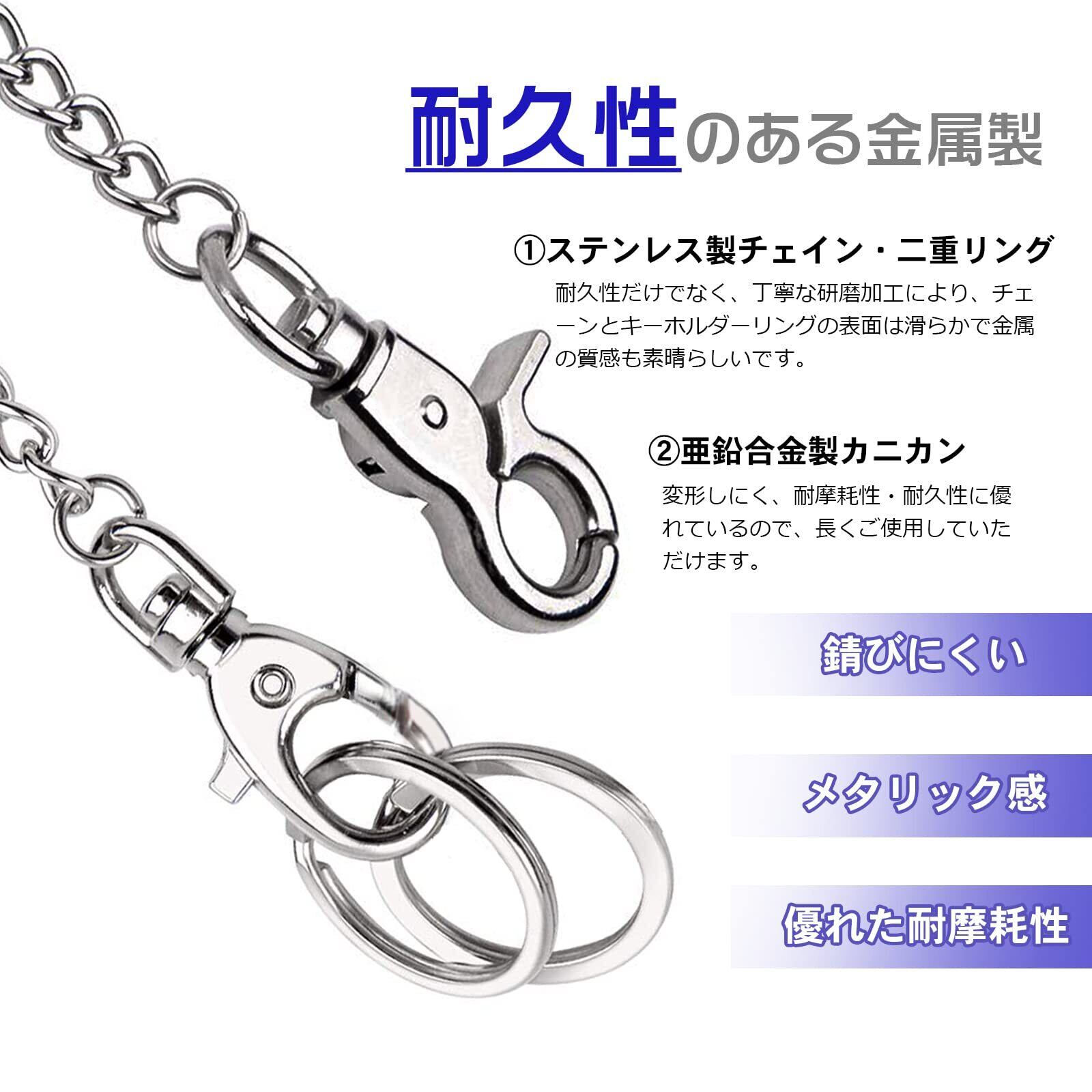 【高級感溢れ&落下紛失防止】 高級感のあるステンレスウォレットチェーンはほとんどのウォレットにも合わせやすいです。使い勝手の高級感溢れデザインに仕上げておりますので、メンズだけでなくレディースでも使用できます。●キーチェーン(カニカンとキーリングパーツ含め)の長さ約 49cmで、カニカンとキーホルダーパーツがありますので、簡単に使用できます。例えば、鞄や腰に掛けて鍵、マスコット飾りなどの小物を収納するのはもちろん、鍵の紛失や身分証明書の落下などの対策になれます。