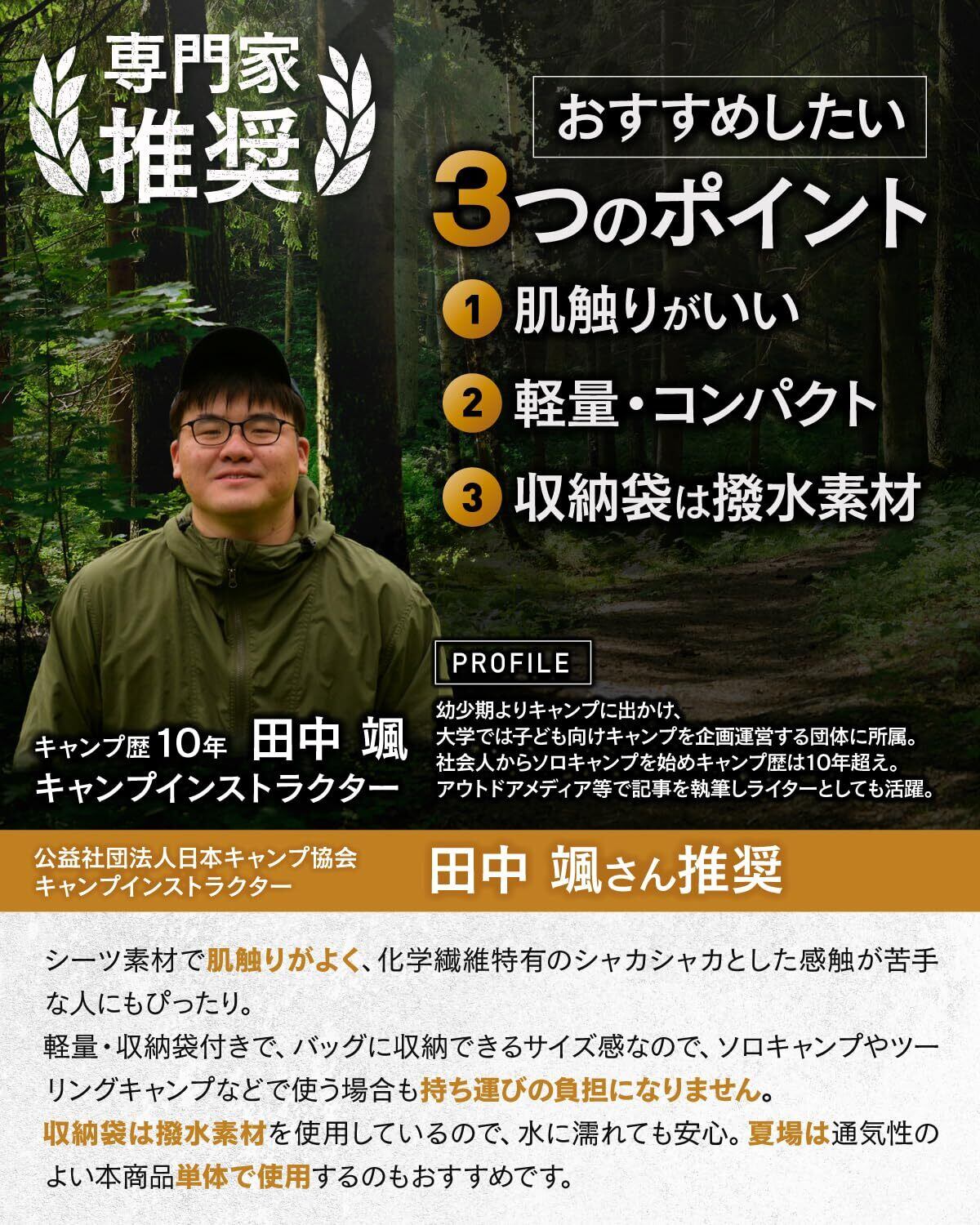 【プロキャンパー推奨】公益社団法人日本キャンプ協会のキャンプインストラクターが推奨するインナーシュラフ。シーツ素材で肌触りがよく、ソロキャンプやツーリングキャンプでも持ち運びの負担にならない軽量仕様。プロ御用達のキャンプギアになります。