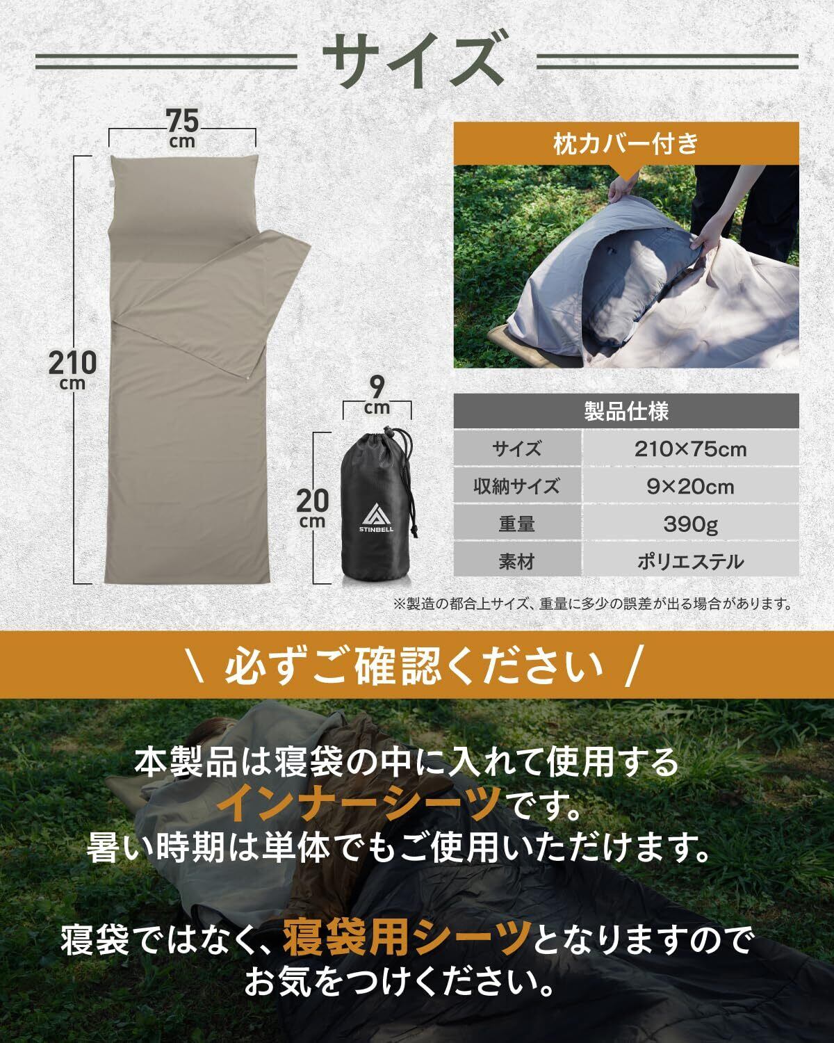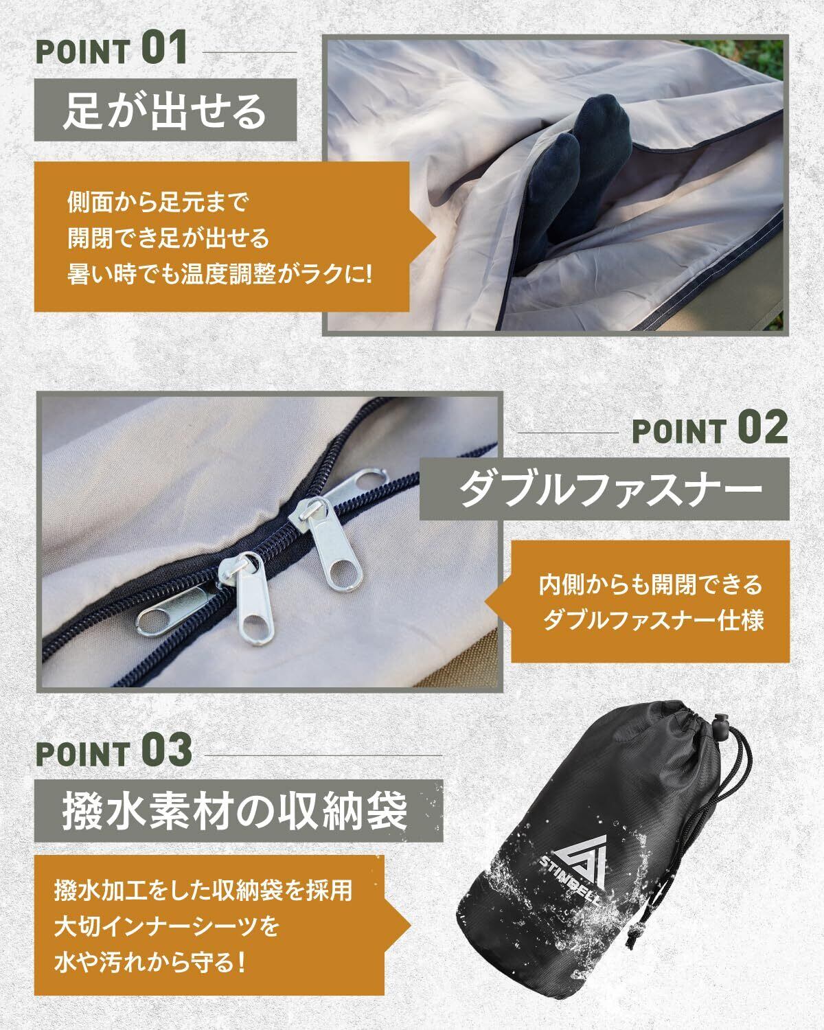 【数量限定】【キャンプ協会インストラクター推奨】インナーシュラフ 軽量登山 インナーシーツ ダブルファスナー丸洗いできる 内側から開閉可能 コンパクト設計 封筒型 枕カバー付き 車中泊 STINBELL(スティンベル) | ニコニコSHOP
