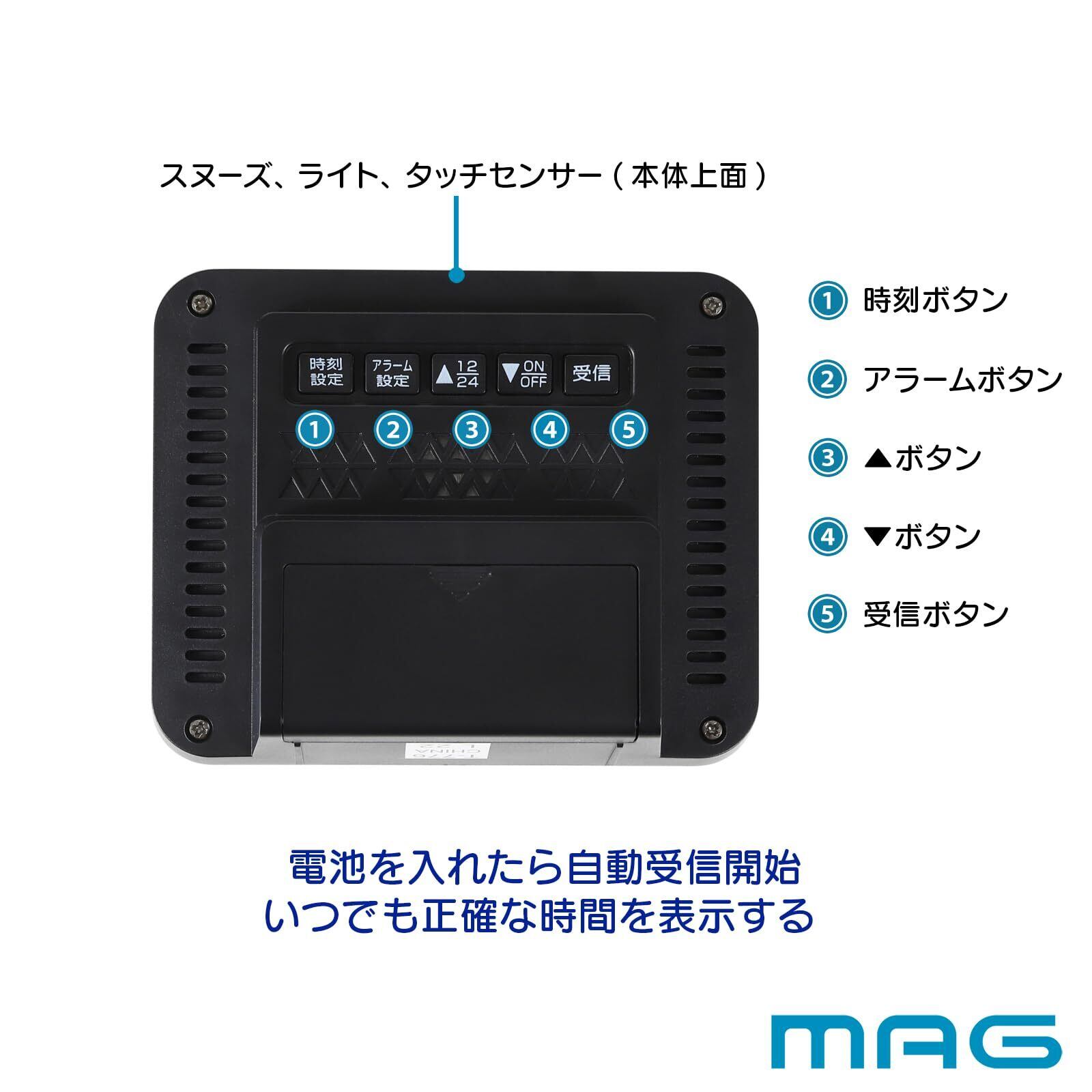 MAG(マグ) 目覚まし時計 置き時計 小型 小さい デジタル 電波時計 温度計 カレンダー 電子音 アラーム スヌーズ ライト ブラック ファルマン T-776 BK-Z ノア精密