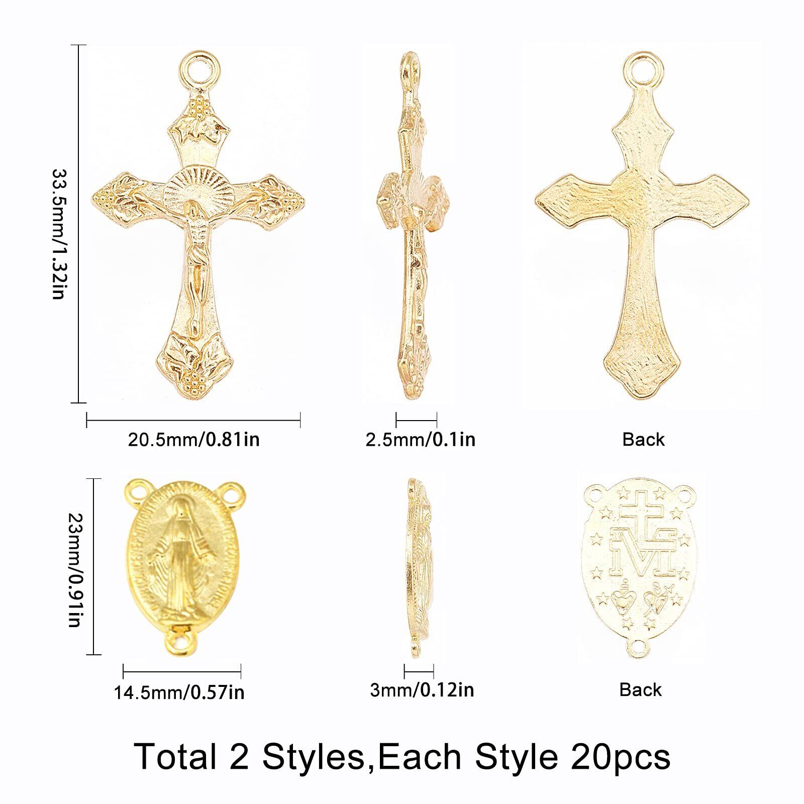 SUNNYCLUE 40個2種 チャーム クロス ペンダント 十字架 パーツ ロザリオクロス ピアス ロザリオ十字架 イヤリング 合金十字架 ネックレス クロス 聖母 ブレスレット ロザリオセンター コネクターパーツ シャンデリア ペンダント メタルパーツ チベット風 アンチック ヴィンテージ 金古美 基礎パーツ 飾り物 ジュエリー作り レディース デコキット クラフト手芸 手作りキット DIY飾り物