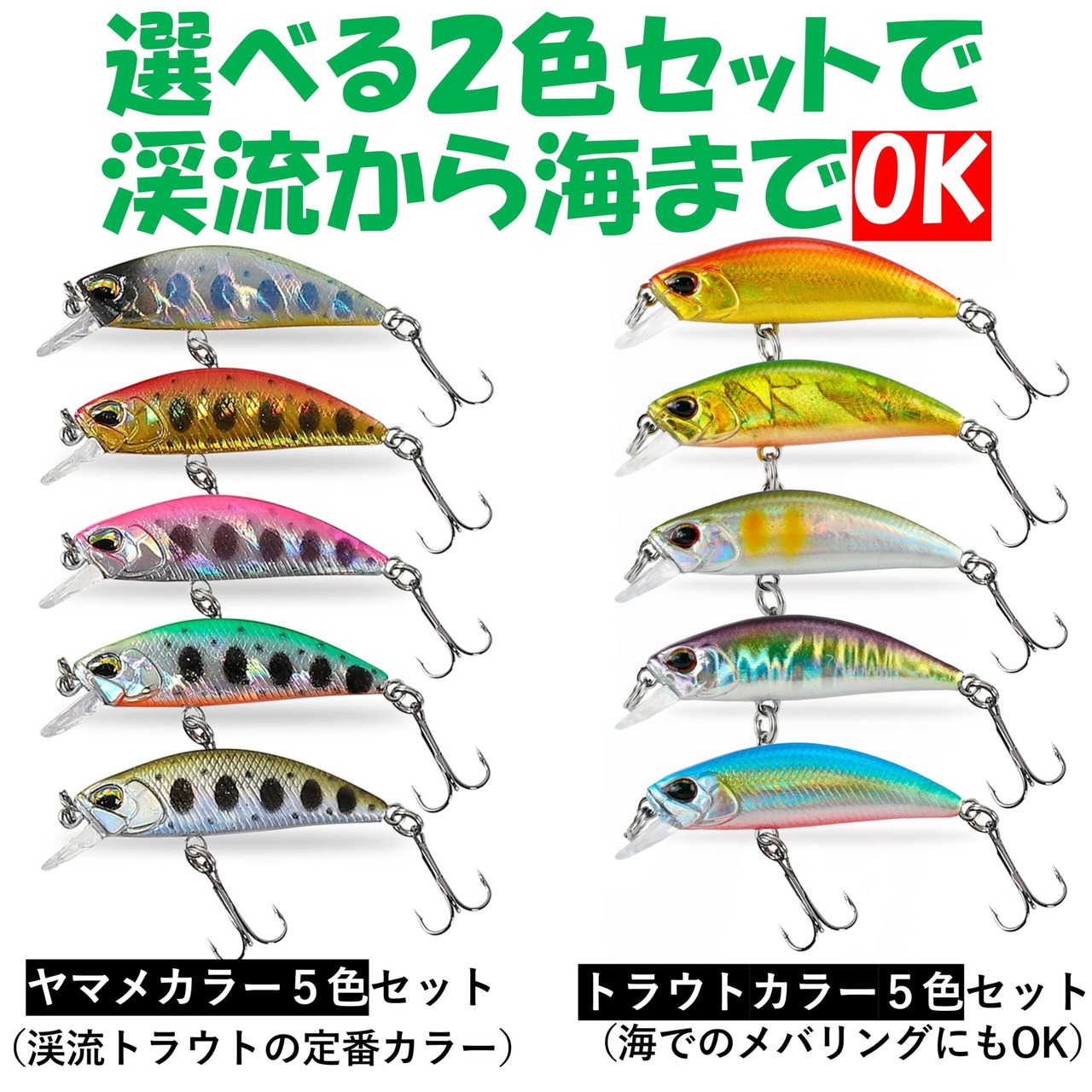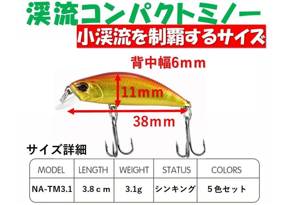 ナイトアーミー 釣具 3.1g トラウト ミノー 3.8cm 5色入り ルアー セット シンキングタイプ 渓流 イワナ ヤマメ ニジマス