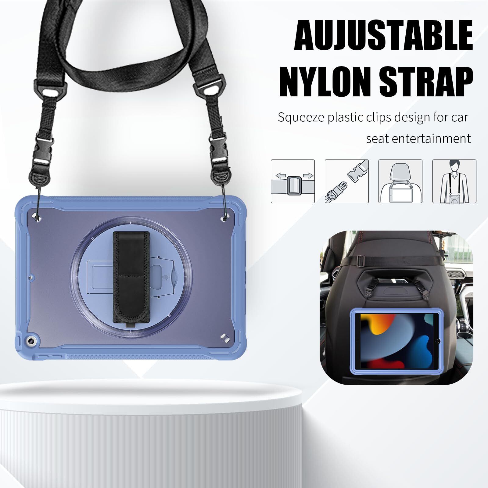 【特価商品】ZenRich iPad 第9/8/7世代 ケース,iPad 10.2 ケース 2021/ 2020/ 2019 iPad 9/8/7世代 ケース 肩掛け 360度回転の折り畳スタンド ハンドストラップ 肩掛け付き ペン収納 半透明 全面保護カバー 可DIY (適格請求書発行事業者) | ニコニコSHOP